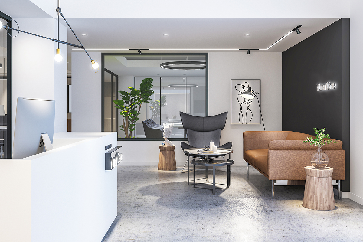 經(jīng)歷了無數(shù)次的思想沖擊、解構(gòu)和重組后,決定以高效協(xié)同、大量?jī)?chǔ)物、自然放松、優(yōu)美曲線等關(guān)鍵詞,組成設(shè)計(jì)要點(diǎn)。空間平面呈規(guī)整的L型,設(shè)計(jì)師將空間所需的所有的不規(guī)整功能區(qū)如:衛(wèi)生間、水吧一一隱藏,把**的舞臺(tái)留給辦公。