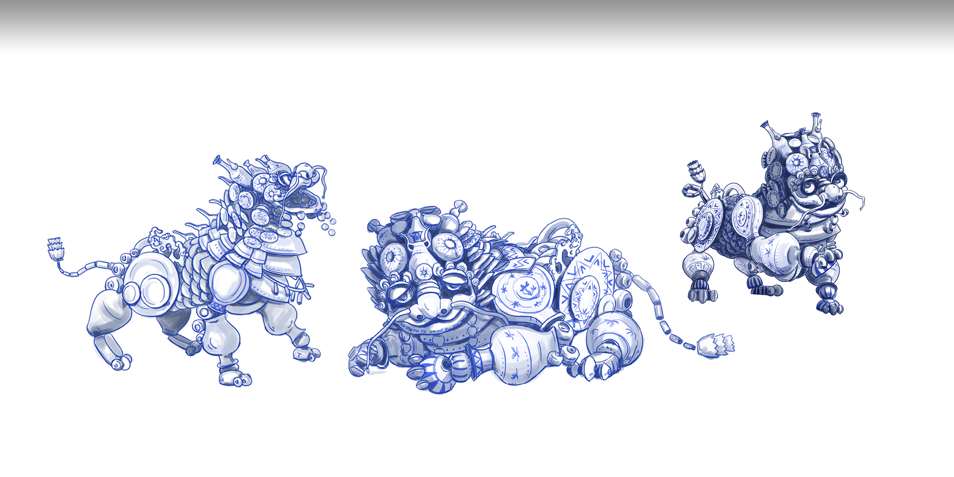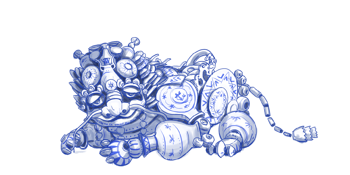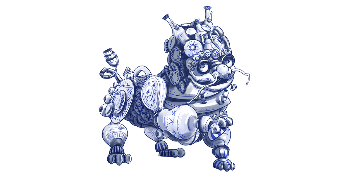 傳說中,在瓷世界里,一切生機(jī)盎然,在生態(tài)圈的頂端,有一個精靈和五個瓷瑞獸,瑞獸們守護(hù)在一條“瓷河”沿岸。HUA是一只由著名青花瓷構(gòu)成的瓷世界瑞獸。他活力、動感、單純、自信、一身正氣。HUA象征著傳統(tǒng)瓷文化新的朝氣和無窮的生命力