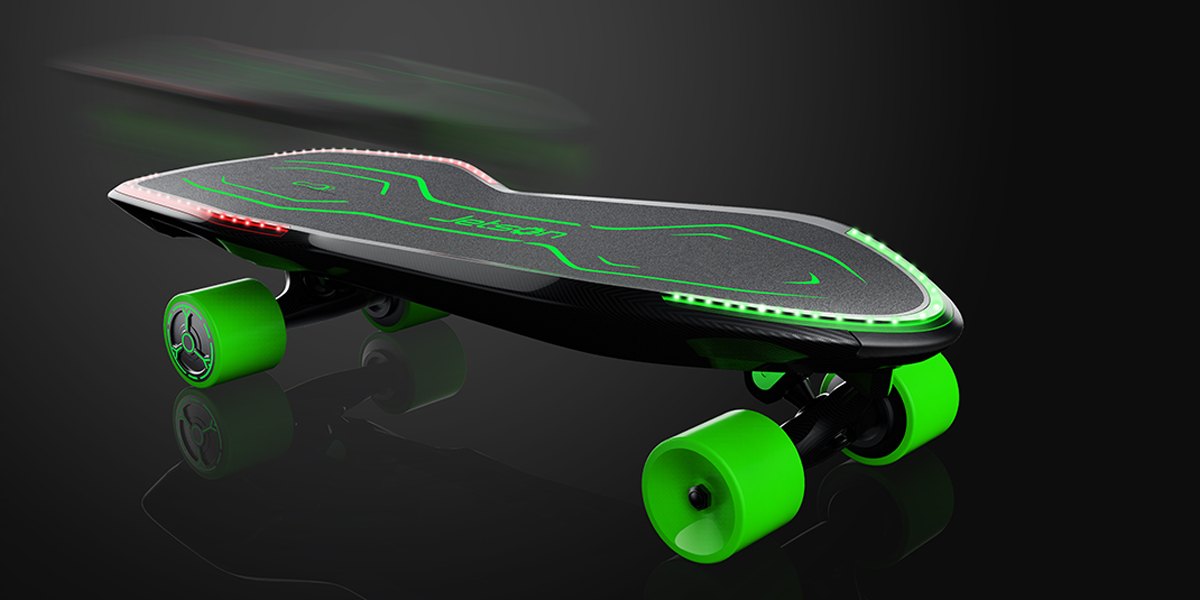 Tomoloo智能電動四輪滑板車是一款針對熱愛運動的年輕人設計的新一代四輪滑板,使用了電力驅動的滑板相比較傳統滑板更加安全簡單,尾部經過加寬設計,能夠方便安全的站立與調整方向,降低了新用戶學習成本,大大增強了智能滑板車的操控性和安全性。電動驅動的滑板相較傳統滑板更加省力,一體化機身輕巧可靠,易于攜帶,能夠充當一般的短途代步工具,適用于更廣大的普通用戶。Tomoloo智能電動四輪滑板車流暢的線條融入了科幻元素,富有動感,前后車燈與滑板融為一體,并且具備剎車提醒、電量提示等功能,夜間駕駛時絢麗奪目,極具個性。本產品擁有傳統滑板的自由操控感與新一代滑板的科幻感,細節(jié)精美而又實用可靠。