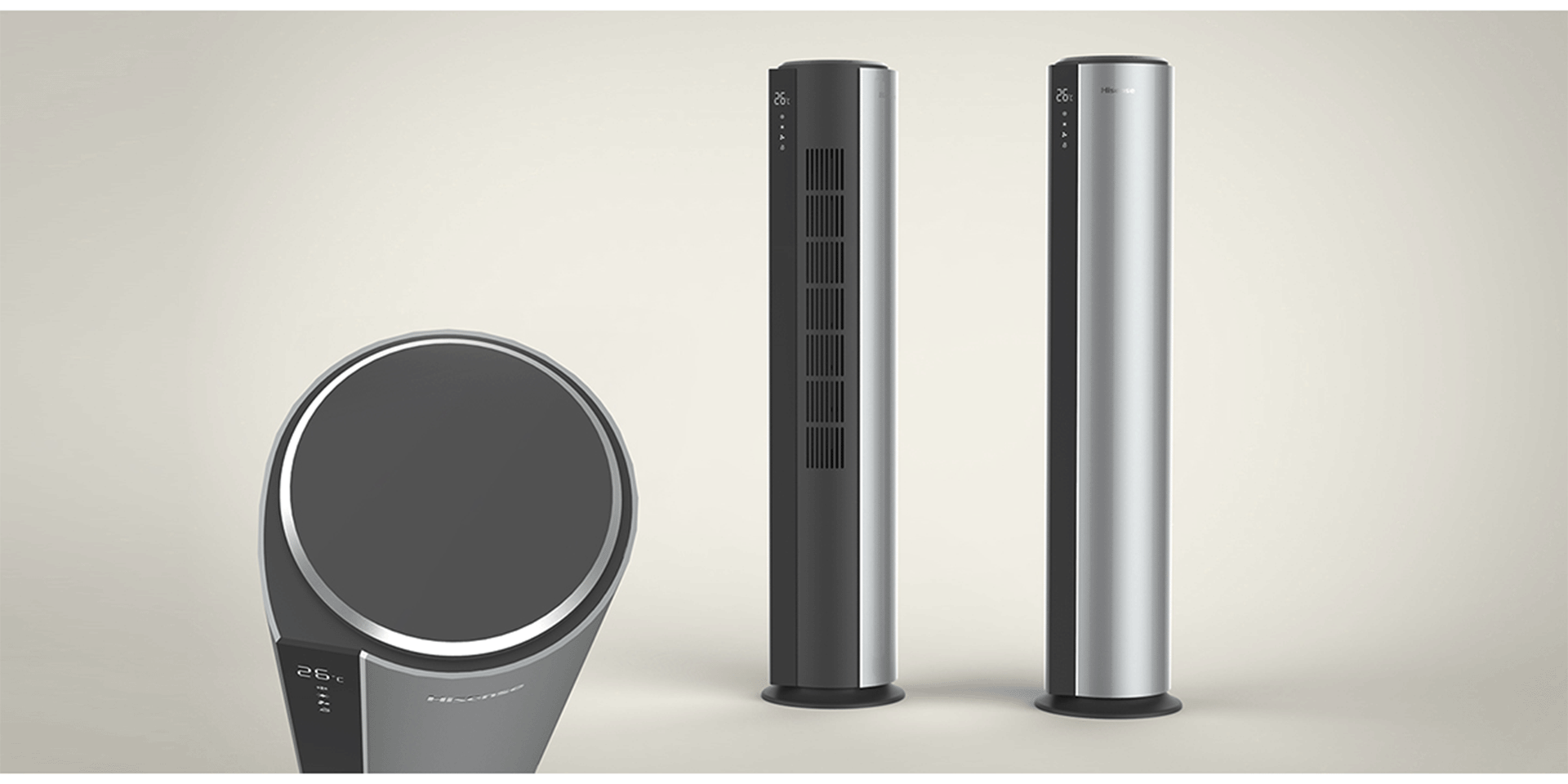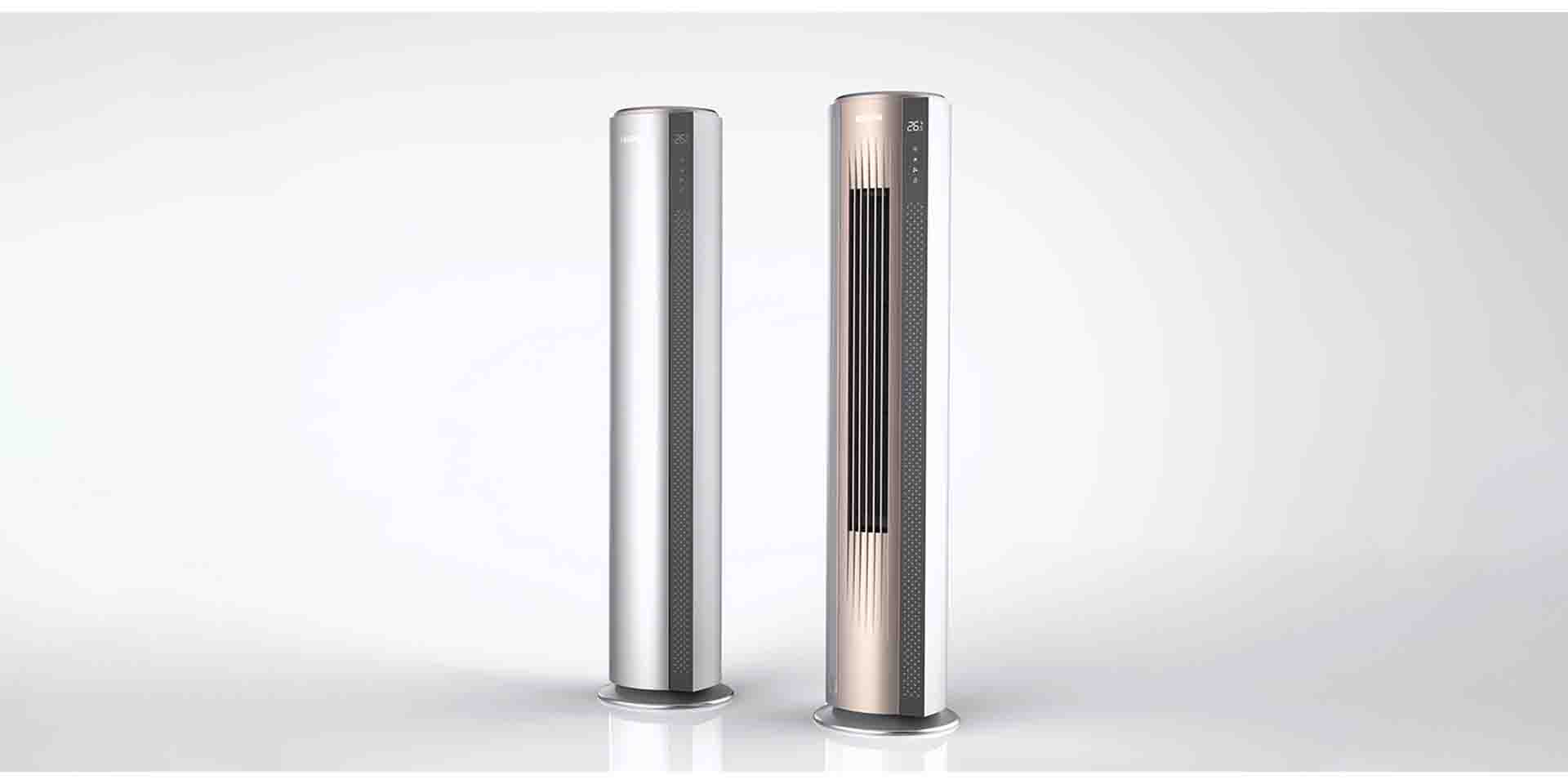 該產(chǎn)品以解決功能需求為出發(fā)點(diǎn),讓用戶快速了解室內(nèi)溫度情況,以及空調(diào)使用模式,提升用戶體驗(yàn)??照{(diào)采用大擋板旋轉(zhuǎn)打開的方式,閉合時(shí)體現(xiàn)產(chǎn)品的整潔性,打開時(shí)漸消式的出風(fēng)口細(xì)節(jié)設(shè)計(jì)、香棋金與高端銀的色彩對(duì)比,彰顯產(chǎn)品的高端定位。同時(shí)側(cè)面獨(dú)立顯示的設(shè)計(jì)方式,使得產(chǎn)品與市面于篇一律的立式空調(diào)形成差異性。