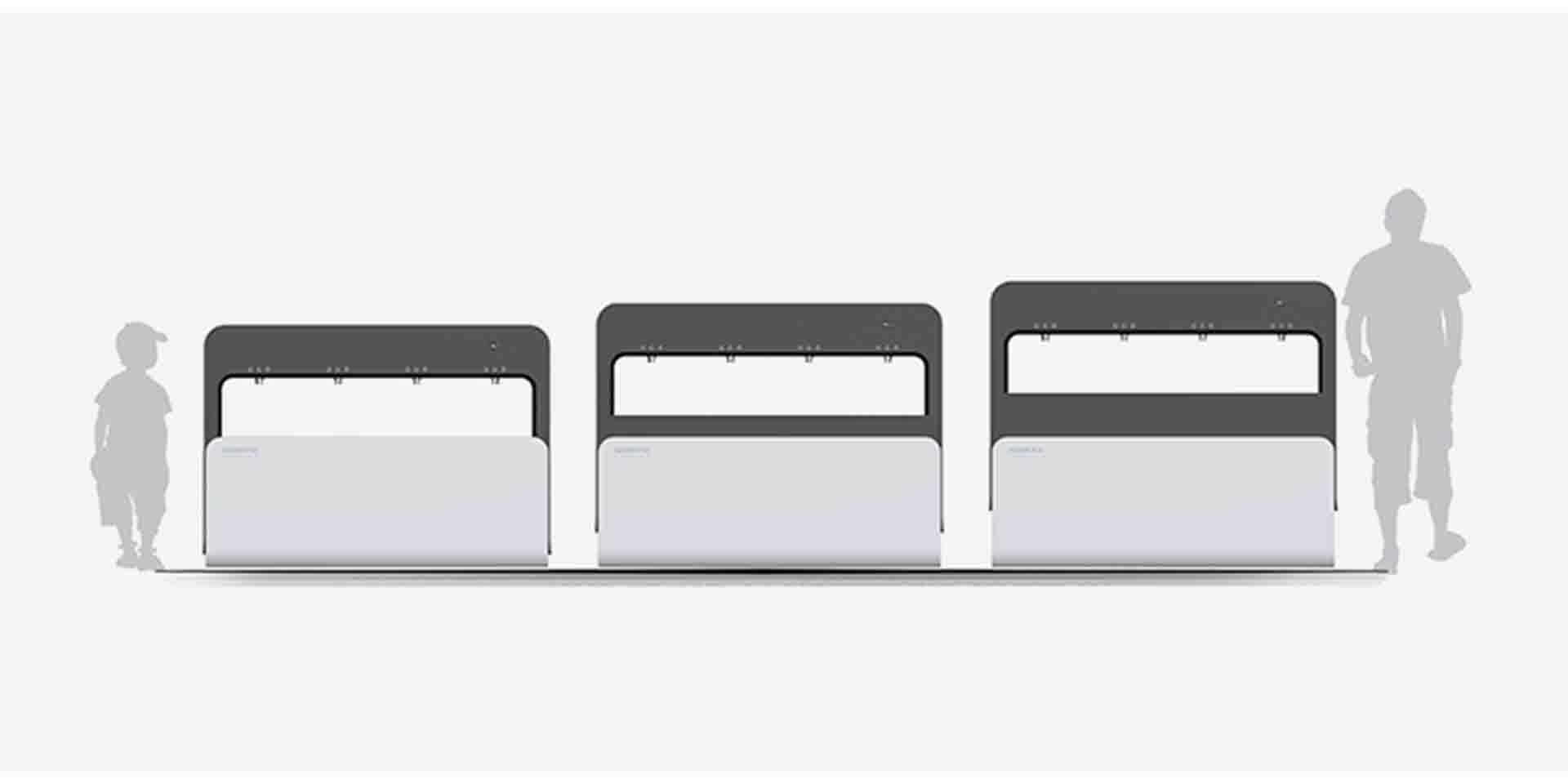 我們通過對現有校園凈水機的研究發(fā)現,市場現有產品差異化小、品牌特征弱、場景適應性窄。新產品旨在滿足大學、中小學、幼兒園等應用場景,適應不同年齡段的人機尺度。如何使一款設備實現不同人機尺寸的轉換,成為我們著重思考的問題。