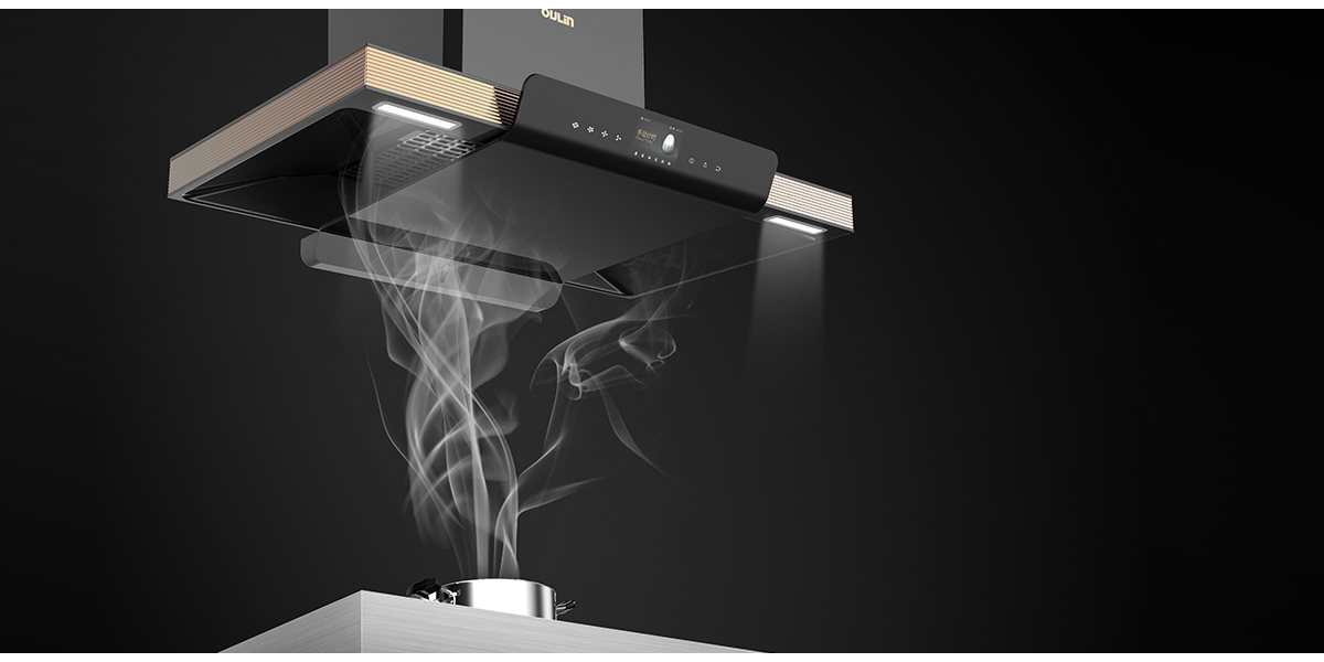 該系列廚房電器外觀采用黑色鋼化玻璃,配上高亮銀色、玫瑰金的航空鋁材,按照美學(xué)比例進(jìn)行幾何分割,給人高端價(jià)值的印象。油煙機(jī)內(nèi)部采用內(nèi)單層O型過(guò)濾網(wǎng),外平板側(cè)吸過(guò)濾,內(nèi)外結(jié)合油煙徹底分離,健康環(huán)保。精確的45度黃金斜角敞開設(shè)計(jì),防止用戶意外磕碰。整體采用近距快吸式設(shè)計(jì),徹底排除油煙。同時(shí),我們擴(kuò)大了金屬油杯的容量,減少倒油次數(shù),從根本上方便使用者清理。在燃?xì)庠钤O(shè)計(jì)上,我們大膽采用顯示屏+觸控調(diào)節(jié)按鍵設(shè)計(jì),任意調(diào)控烹飪模式,為用戶帶來(lái)更智能的廚房體驗(yàn)。