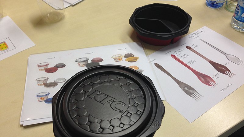 開(kāi)始設(shè)計(jì)之初,設(shè)計(jì)師通過(guò)約見(jiàn)和暗訪兩種方式,實(shí)地觀察了肯德基幕后廚房,對(duì)中式快餐現(xiàn)有的制作流程進(jìn)行了深度了解,發(fā)現(xiàn)不合理現(xiàn)象,例如現(xiàn)有飯盒在層疊狀態(tài)下不易取出,這個(gè)小小的繁瑣動(dòng)作極大的影響了工作人員配餐的速度,在這種客流量巨大的快餐市場(chǎng)中,每一秒鐘都必須珍惜。設(shè)計(jì)師還指出了其他可以通過(guò)設(shè)計(jì)修正的創(chuàng)新點(diǎn),通過(guò)這些創(chuàng)新點(diǎn),來(lái)指導(dǎo)我們未來(lái)的設(shè)計(jì)方向。(下圖)