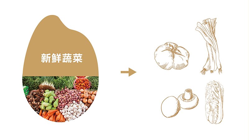 平面設(shè)計(jì)是快消品行業(yè)中非常重要的環(huán)節(jié)之一,它肩負(fù)著傳達(dá)品牌特征的最直接手段。本次設(shè)計(jì)我們先定義了需要表現(xiàn)的主題——“新鮮美味”、“現(xiàn)代古典”、“包容滿足”。然后根據(jù)主題,提煉設(shè)計(jì)元素。K記飯桶要給消費(fèi)者帶來(lái)“認(rèn)真做飯”的直觀感受,這沒(méi)有什么比手繪風(fēng)格的圖案更好的了,設(shè)計(jì)師花了很大的精力,用抽象直觀的表現(xiàn)方式,把新鮮的原料繪制出來(lái),再平鋪在桶身表面,形成一種蔬果滿園的滿足感。