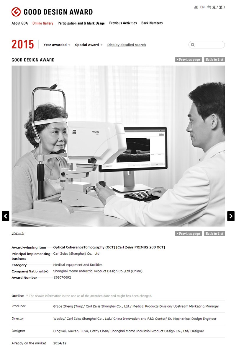 木馬設(shè)計再獲殊榮!在近期結(jié)束的日本優(yōu)良設(shè)計GOOD DESIGN獎評選中,木馬設(shè)計憑借自身濃厚的設(shè)計經(jīng)驗積淀和創(chuàng)新的實力,卡爾 · 蔡司光學(xué)相干斷層成像掃描系統(tǒng)(Carl Zeiss PRIMUS 200 OCT)斬獲2015年度GOOD DESIGN設(shè)計大獎!