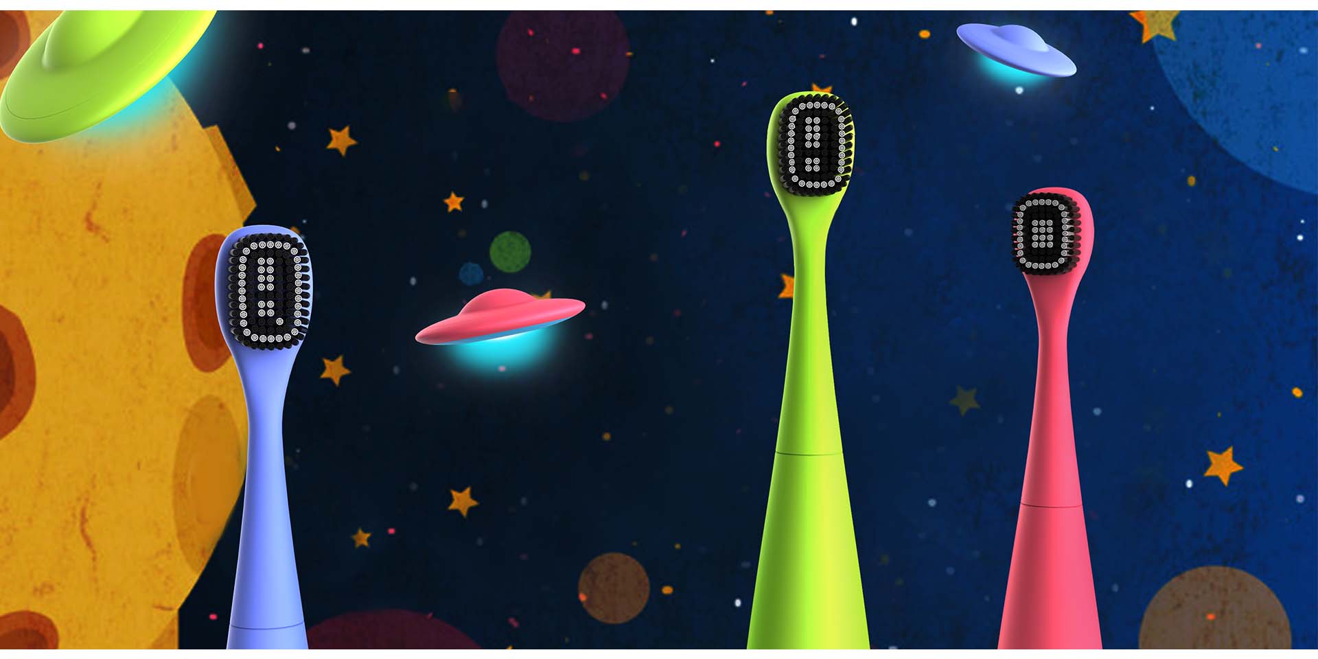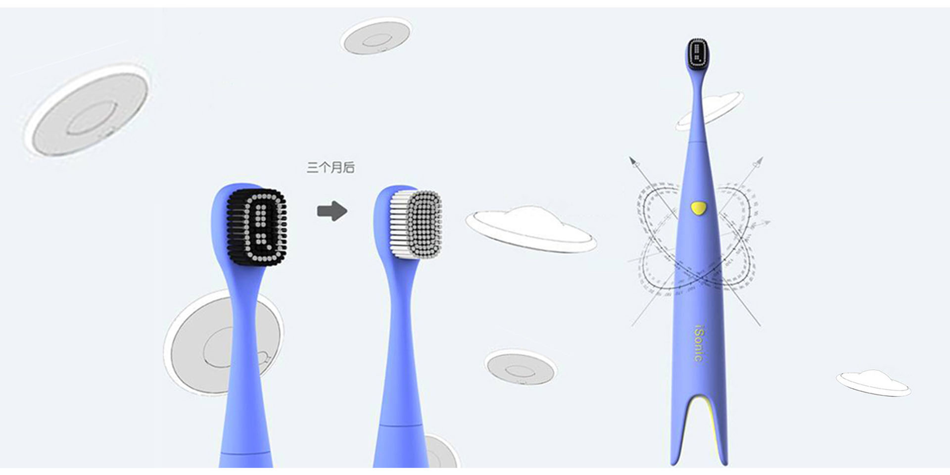 通過沉浸式的市場調(diào)研,我們整理、分析、總結(jié)各大競爭品牌,從而提煉出產(chǎn)品的核心競爭力。洞察是產(chǎn)品設(shè)計(jì)的起點(diǎn),通過了解兒童的喜好、心理以及行為習(xí)慣,針對性的確立核心功能,使產(chǎn)品更加符合市場和消費(fèi)者的需求。這款兒童電動牙刷造型酷似外星人,張開的雙腳特征獨(dú)一無二,具有很強(qiáng)的識別度,很好地滿足了兒童的好奇心和想象力,同時(shí)便于養(yǎng)成認(rèn)真刷牙的好習(xí)慣。針對不同年齡段的兒童設(shè)計(jì)不同形態(tài)的牙刷頭,既環(huán)保又節(jié)約成本。