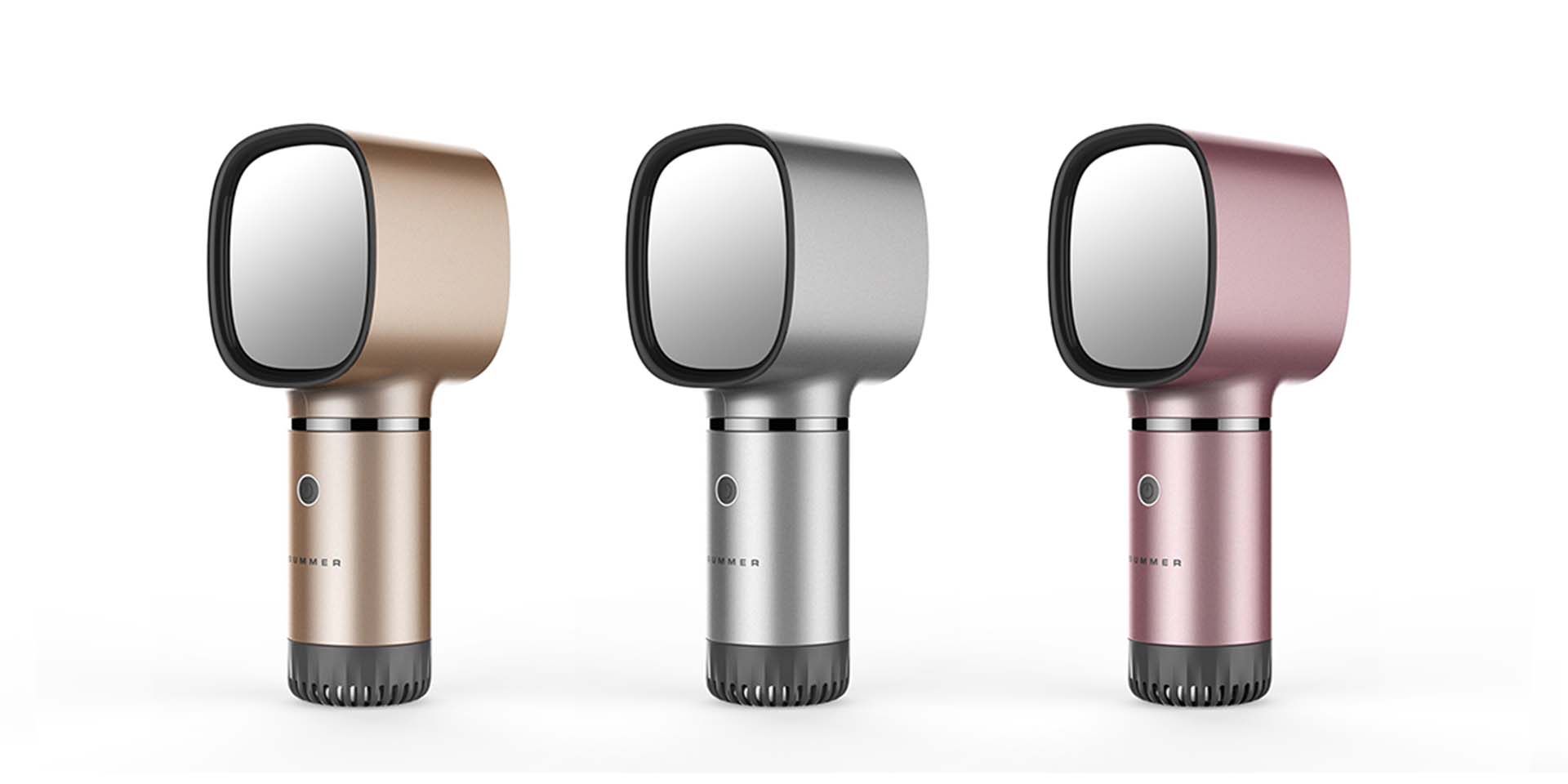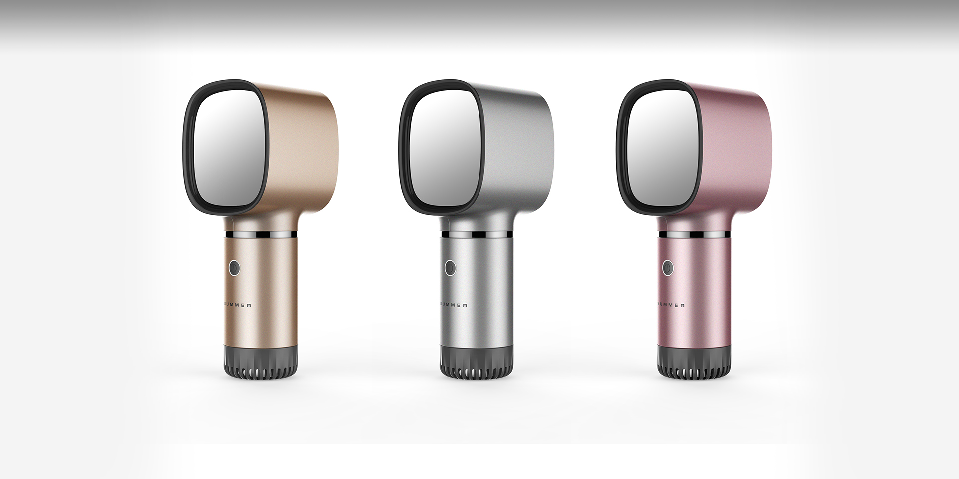 此款無葉風(fēng)扇為女性群體打造,將補(bǔ)光燈和鏡面相結(jié)合,便于女性在化妝時使用,無須再單獨(dú)使用補(bǔ)燈光,同時還可以享受涼爽的感覺。按鍵采用按壓一鍵式,短按風(fēng)量,長按補(bǔ)光,增加了光效功能。設(shè)計師將紋理與進(jìn)風(fēng)口相結(jié)合,隱藏式設(shè)計,減少進(jìn)風(fēng)口對整體造型的影響。