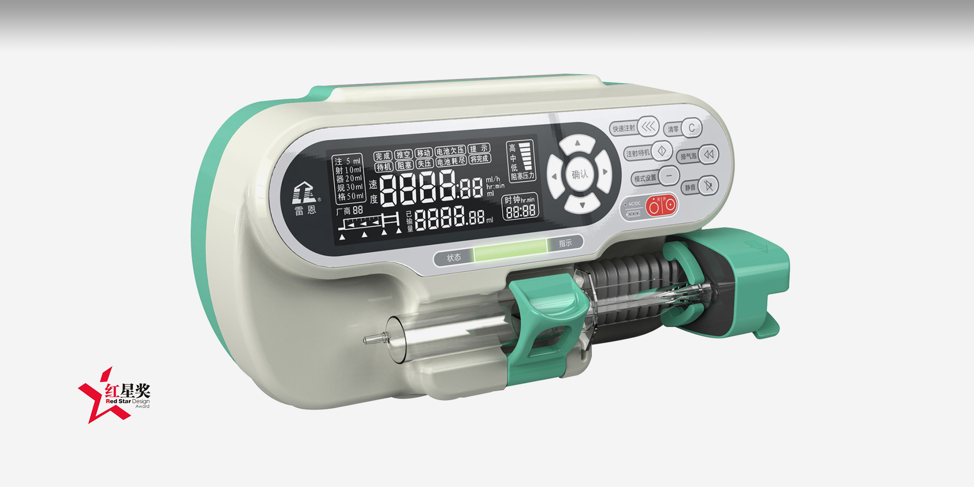 隨著現(xiàn)今醫(yī)療科技的不斷進步,醫(yī)療器械的設(shè)計要求也越來越高,同時操作者和病患對所使用的器械也更加關(guān)注。我們從未放棄對醫(yī)療產(chǎn)品的開發(fā)和設(shè)計,這款產(chǎn)品正是在這樣的背景下產(chǎn)生的。以往的注射泵的造型都比較機械化。我們摒棄了那種僵硬的功能化外形設(shè)計,遵循了多種美學(xué)法則和造型給人帶來的心理感受,讓產(chǎn)品倍感親切。產(chǎn)品整體外形為跑到圓的設(shè)計元素,這樣既滿足了內(nèi)部空間的需求,又顯得比較柔和輕松。在控制區(qū)域的設(shè)計上,我們統(tǒng)一了形式符號,使得產(chǎn)品擁有了更加一致的風(fēng)格。在顏色上我們也采用了淡米黃這種比較容易讓人安靜的顏色,這樣能在整個治療過程中達到最好的效果。