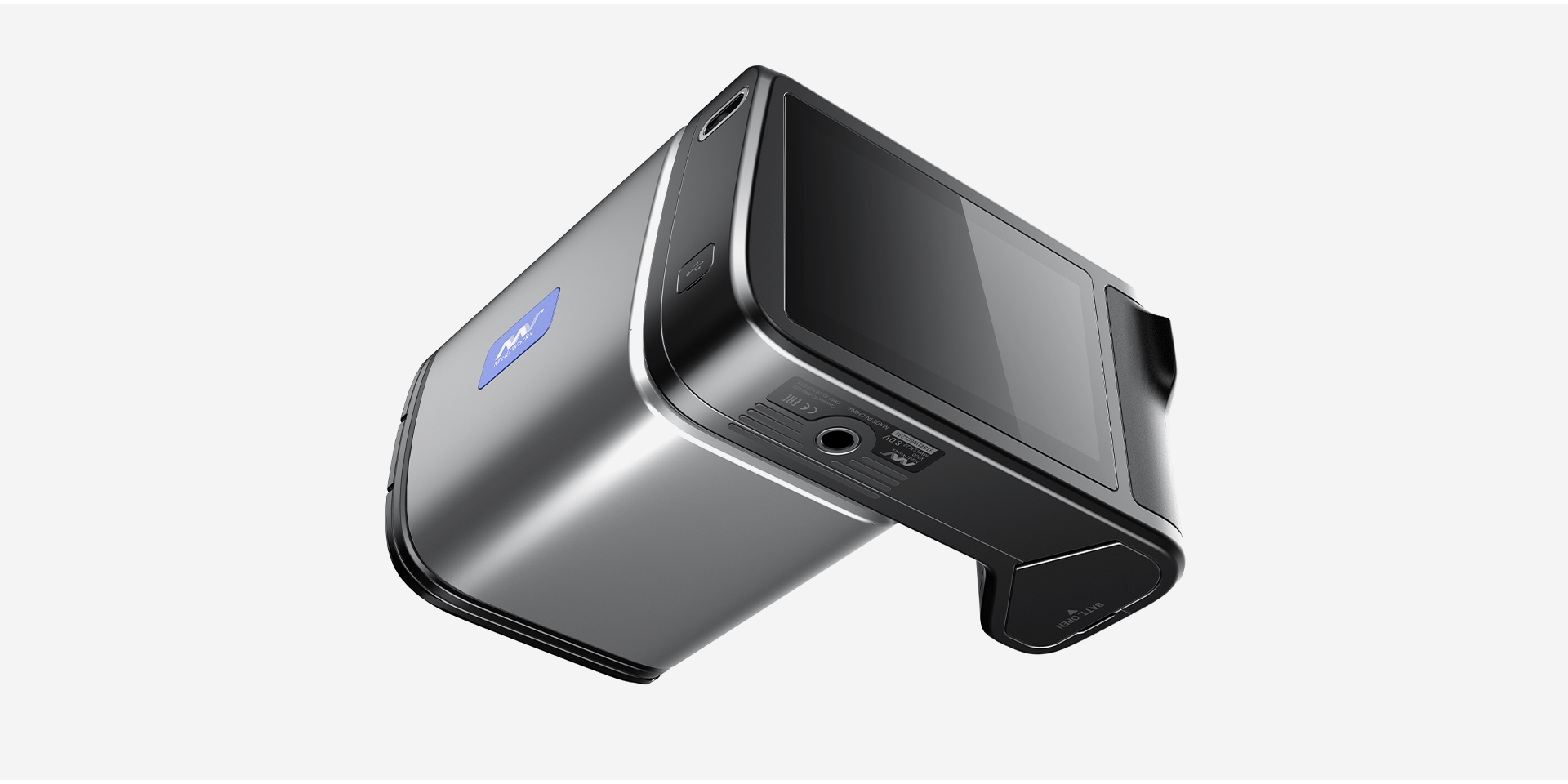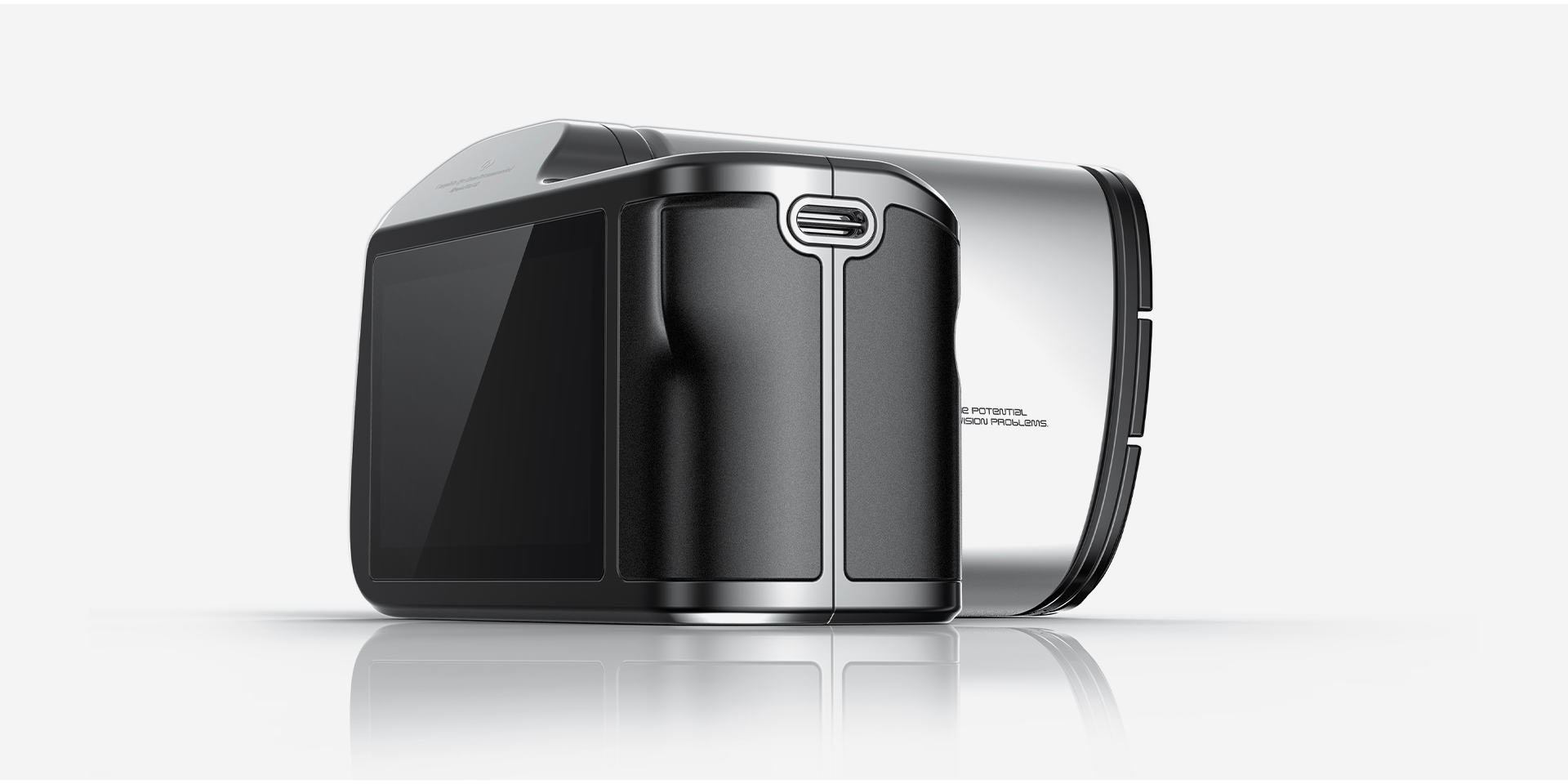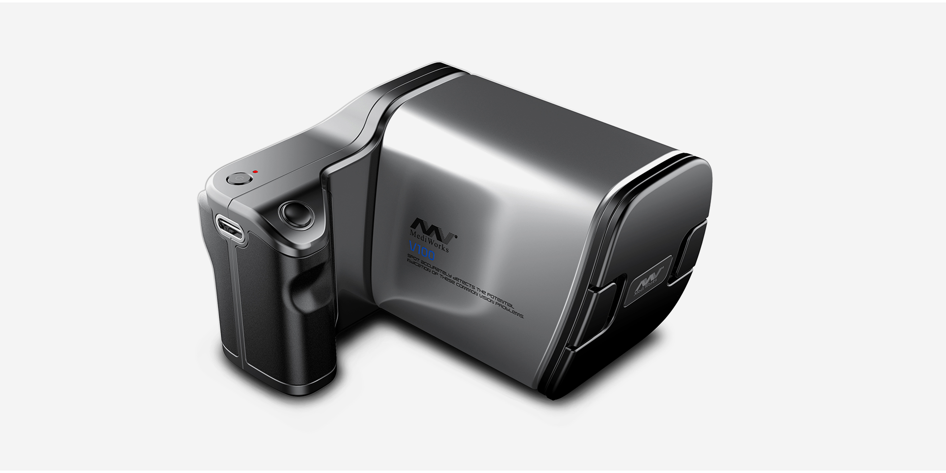 該產(chǎn)品的外觀采用極簡設(shè)計,形似單反相機,邊角略圓潤,產(chǎn)品以深灰色配色,整體外觀時尚大氣、別具一格,區(qū)別于傳統(tǒng)醫(yī)療設(shè)備。結(jié)合產(chǎn)品材料質(zhì)感,凸顯專業(yè)價值。機身使用了ABS塑料,在外表上采用了細沙金屬噴漆的工藝,在人手關(guān)鍵握持部位采用了柔觸感噴漆/透氣皮革,增強摩擦力且長期持握不滑手。