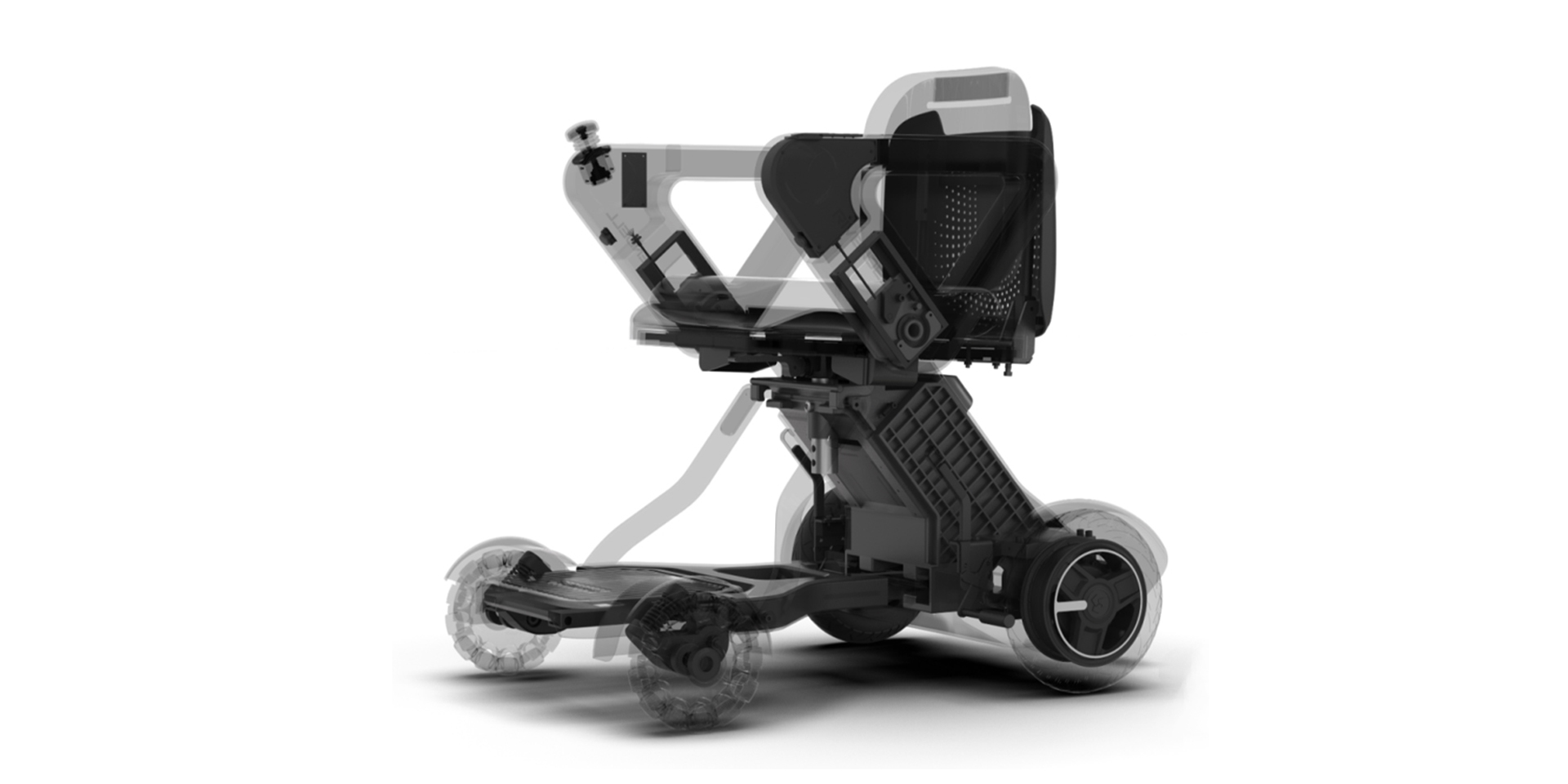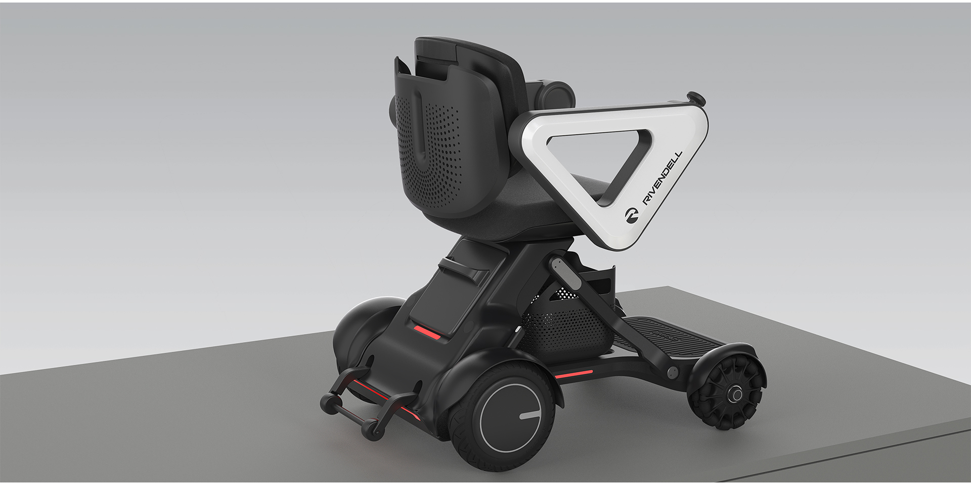 這一款電動輪椅設計時考慮的用戶不僅僅有殘疾人,還會有一些不適合開車,無法長距離步行,無法久站的大齡用戶。他們在使用電動輪椅時更關注駕駛的貼心體驗,以及產品的前衛(wèi)造型,他們追求的不僅是代步,而是一種引領的,不受打擾的出行方式。外觀設計上與傳統(tǒng)輪椅有著明顯的差異,隱藏的內部結構,縮小的輪子,讓用戶可以自然地停留在任何場所進行工作活動,仿佛就坐在一把高品質的椅子上。輪椅整體風格內斂沉穩(wěn)不張揚,搭配了合適的燈光提醒,以及穩(wěn)定踏實的三角元素,幫助用戶沉心專注,營造出專業(yè)的,科技的使用體驗,希望我們的輪椅可以給使用者帶來啟發(fā)。此外還有更多貼心的小設計:緩震彈簧的增加,扶手搖桿可左右手互換,踏板可抬起方便上下,扶手翻轉后側面上下無遮擋,幾乎每個部件都可以調整高度角度,單手操作移動,松手自動鎖止,可原地轉彎。
