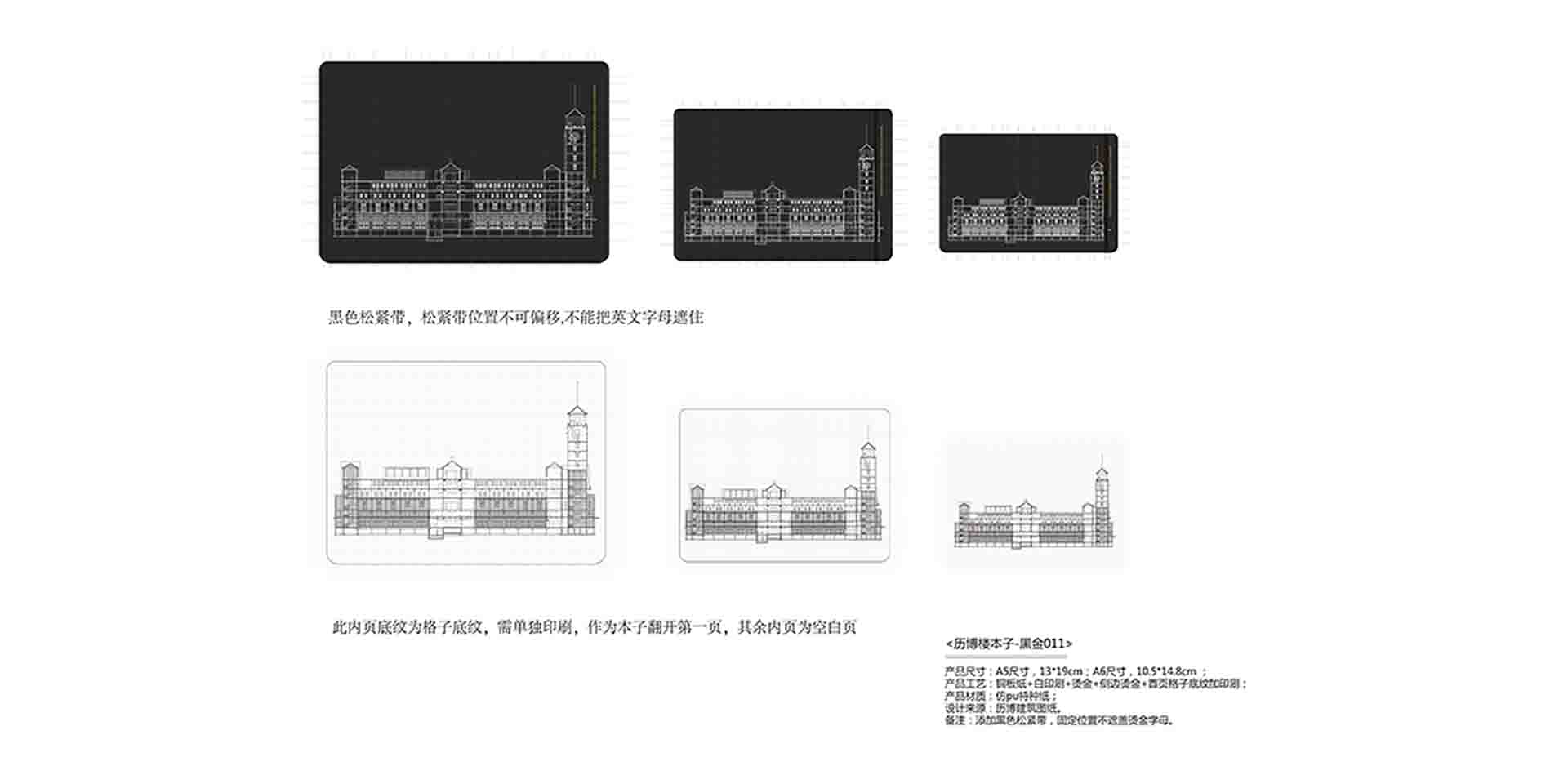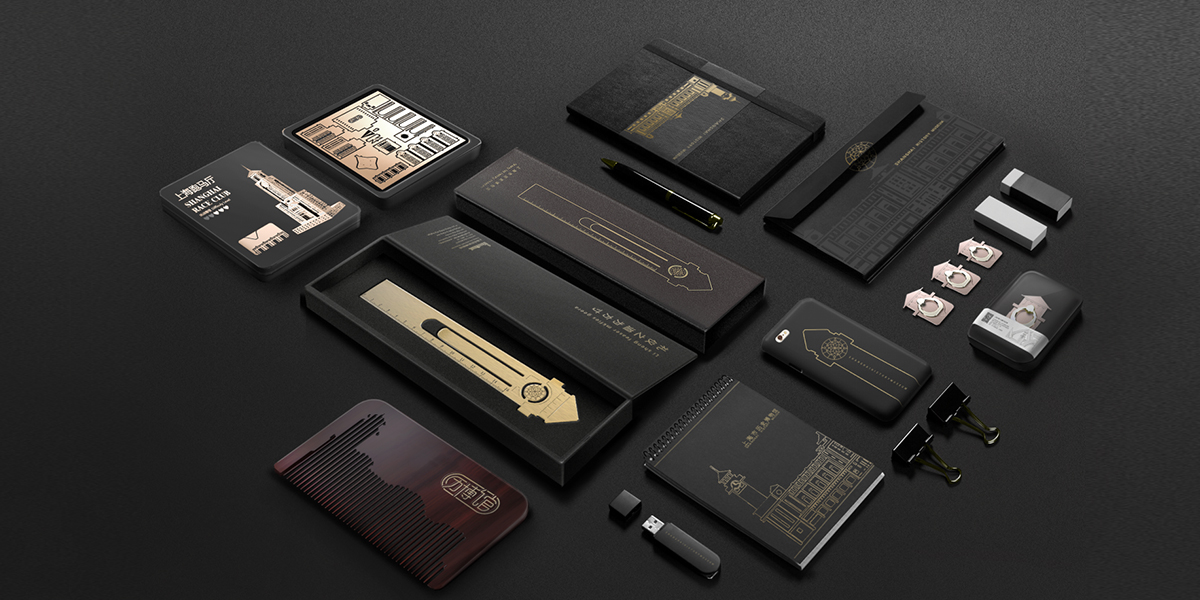 上歷博黑金商務(wù)系列是木馬設(shè)計(jì)為上海市歷史博物館創(chuàng)新設(shè)計(jì)的商務(wù)系列衍生品,將歷博館新樓作為整個(gè)設(shè)計(jì)的主打元素,配以黑金色調(diào),形成系列化的產(chǎn)品線,凸顯低調(diào)奢華的商務(wù)氣息。上海市歷史博物館是上海2017年的重點(diǎn)工程項(xiàng)目之一,為此上海市政府特選取人名廣場(chǎng)最為著名的一棟建筑原上海跑馬廳作為上海歷史博物館的新館。跑馬廳(跑馬總會(huì)大樓)于1933年由英國(guó)設(shè)計(jì)師設(shè)計(jì),整體建筑風(fēng)格以新古典主義為主,帶有濃厚的英國(guó)韻味。簡(jiǎn)潔的建筑線條,凝重的建筑色彩和獨(dú)特的建筑風(fēng)格結(jié)合上海本土化特色,讓跑馬廳建筑成為人名廣場(chǎng)的一大標(biāo)志,莊重肅穆的氣質(zhì)讓跑馬廳與歷史博物館蘊(yùn)含的歷史積淀有機(jī)融合,成為歷史博物館新館的不二選擇,也成為我們文創(chuàng)設(shè)計(jì)元素提煉的不錯(cuò)選擇。上海市歷史博物館新館——跑馬廳具有濃烈的英式建筑氣息,繁復(fù)精致的細(xì)節(jié)設(shè)計(jì)讓整棟樓充滿典雅莊重的氛圍,并以鐘樓為主形成標(biāo)志性特征。設(shè)計(jì)師以整棟建筑為設(shè)計(jì)源,將繁瑣的建筑外形與圖紙簡(jiǎn)化,以幾何化、扁平化、符號(hào)化手段來突出建筑外觀。輔以黑色與金色,用強(qiáng)烈的色彩對(duì)比凸顯上海歷史博物館“滿腹經(jīng)華,低調(diào)謙遜”的氣質(zhì),同時(shí)也對(duì)外展示上海歷史博物館包羅萬象的大氣胸懷。形成一套現(xiàn)代高端的系列產(chǎn)品。