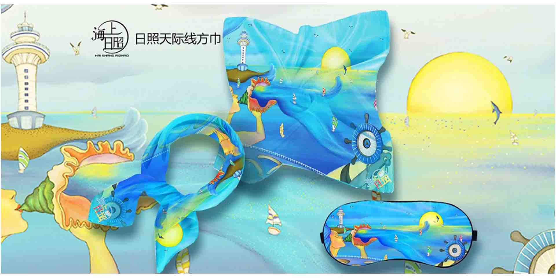 "海上日照"是我們?nèi)照展I(yè)設(shè)計中心為日照這座年輕的海濱城市所打造的一個文化旅游品牌,品牌名稱的來源其實是一語雙關(guān),“海上”、“上?!?,就像是與上海的連接,同時日照代表的既是這個城市的名字,也是一種對生活的積極樂觀陽光的態(tài)度日照是一個既現(xiàn)代又有歷史的城市,從歷史來看,首先是他有兩城文化,日照被稱為亞洲最早的城市,在日照河山的兩城出土了大量的文物,包含陶器、石器等等,這些器具都是源于古老的海洋文化,有大量的圖騰等等,這些是他的一個創(chuàng)意來源;第二個日照的文化就是海洋文化。作為一個海濱城市,有大量歌頌漁民出海打魚與自然做抗爭的農(nóng)民畫,這個是我們另外一種文化的來源,表達的是一種漁民的生活,一種奮斗的精神;第三個是來自于莒國文化,在春秋時期有莒魯會盟,從莒魯會盟時期一直到現(xiàn)在,在莒縣留存下來了一棵非常古老的杏樹,每當秋天的時候,這棵杏樹的銀杏葉就散落下來,在藍天白云陽光的映襯下構(gòu)建出一幅非常俊美的圖景;第四個是來自于日照這座美麗城市,來自于這座城市的天際線,包含燈塔、海岸線,今年日照也剛被評為全國的文明城市,從它的建筑到規(guī)劃,這些都構(gòu)成我們創(chuàng)意的來源。在項目剛開始的時候,我們邀請了一位非常年輕的畫家叫鄭曉晨,他用自己非常有親和力的、概括的、又充滿了藝術(shù)韻味的一種表達形式,將這四種文化要素創(chuàng)作出了四幅非常有表現(xiàn)力的作品。作品所呈現(xiàn)的要素,就是對四種文化的一種詩意表達,非常富有表現(xiàn)力,然后我們再次去定義這個不同的產(chǎn)品功能,在充分考慮到作為一座旅游城市,他在海邊、機場和高鐵這樣的一些觸點,然后將這些功能和不同銷售的場景進行融合,從而產(chǎn)生了海上日照這樣的一個系列作品。