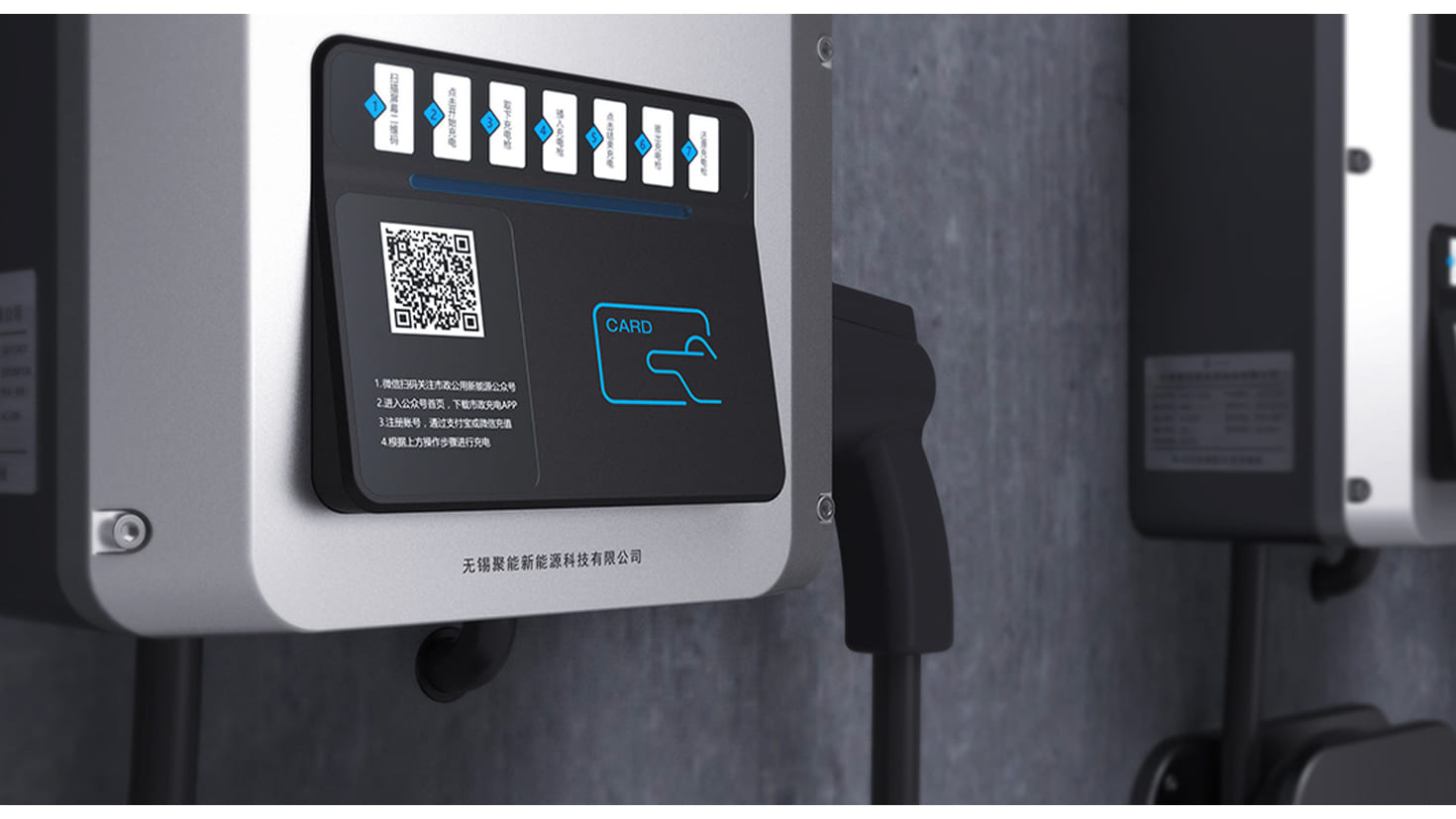 在低碳環(huán)保的大趨勢下,新能源的發(fā)展越來越被注重,一款顏值與實力并存的充電樁就顯得尤其重要。此款充電樁采用了大斜面的設計風格,正面采用可替換的形式,便于不同的廠商進行使用。內(nèi)置 IC 刷卡裝置,便于用戶支付使用。通過燈帶的形式,使用戶更加直觀地了解充電樁的使用情況。