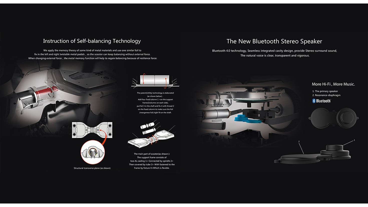 設(shè)計(jì)來源于太空飛船,曲線的跳縱美感,宛如游俠探夢遨翔,追逐自由。流暢的曲線貫穿整個產(chǎn)品讓整體造型一氣呵成,而折面的運(yùn)用又讓產(chǎn)品充滿了力量感,再搭配局部的燈光效果,完美的塑造出了一個安全感、運(yùn)動感、科技感的時尚產(chǎn)品。腳踏的凹凸紋理不僅豐富了產(chǎn)品設(shè)計(jì)的細(xì)節(jié),同時還加強(qiáng)了硅膠墊的結(jié)構(gòu)強(qiáng)度,也增加了腳踏控制器的靈敏程度,將形式與功能完美結(jié)合。轉(zhuǎn)軸截面采用豎向橢圓設(shè)計(jì),提升強(qiáng)度同時讓抓握感更舒適!該雙輪平衡車從用戶需求出發(fā),采用了獨(dú)創(chuàng)的物理性自平衡技術(shù),大大降低了產(chǎn)品的學(xué)習(xí)成本。從而在初學(xué)者上車和下車的兩個關(guān)鍵環(huán)節(jié)上,大大提升了車身的平穩(wěn)性,操控性和安全性都明顯提升。