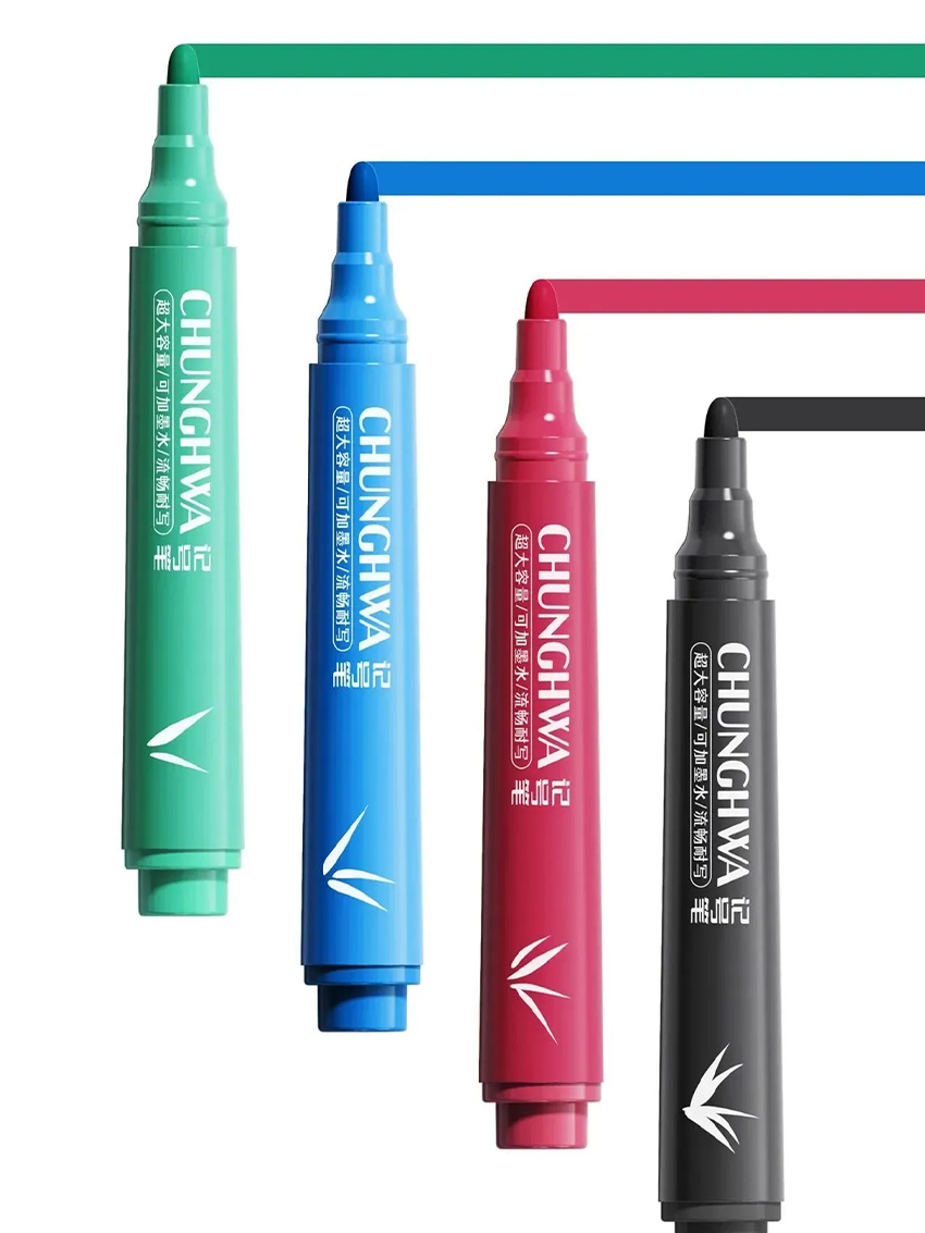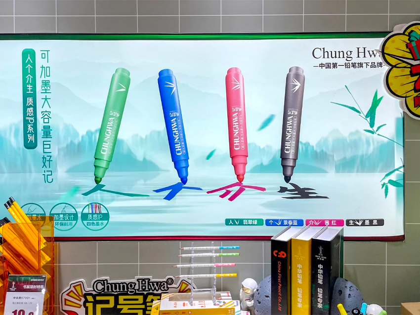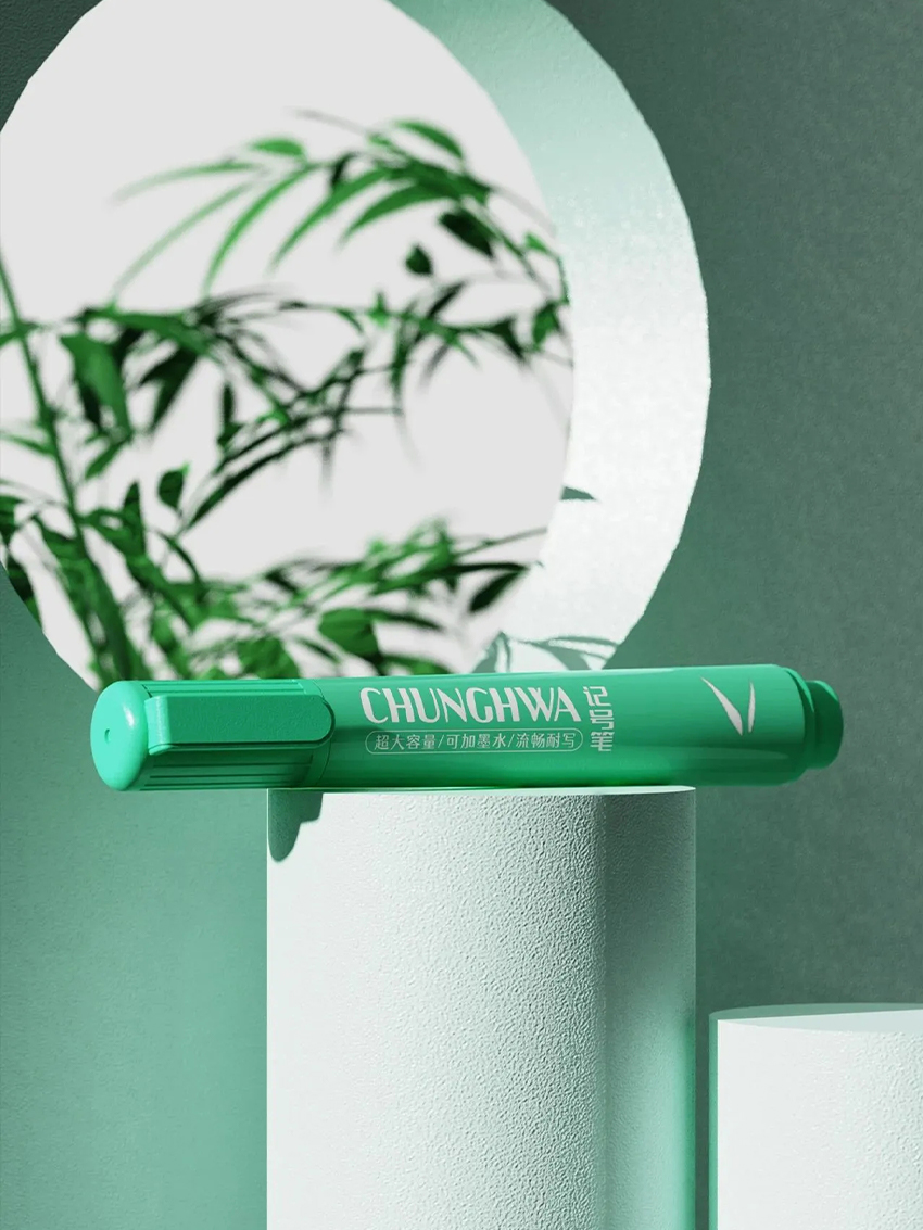 中鉛開箱記號筆大膽而跳躍的筆身由“CHUNGHWA"底紋打底,將品牌基因與價值符號相結(jié)合,活潑的字符跳動,代表中鉛在傳承歷史的同時,也傳遞著新生與活力。