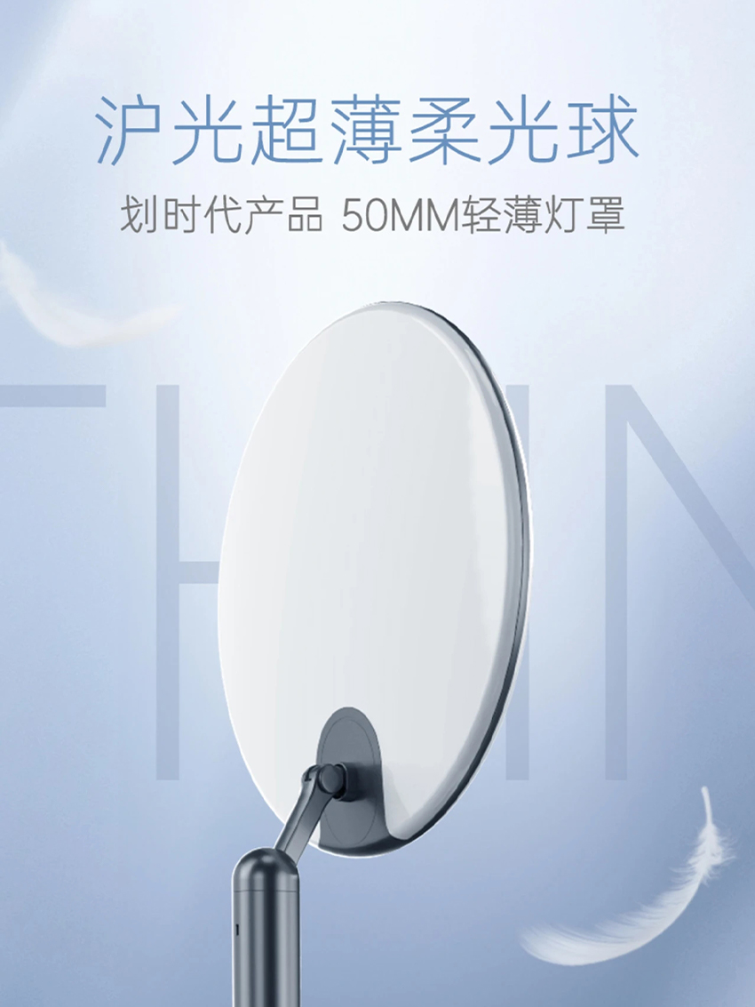 直播行業(yè)不斷的滲透,讓我們的工作地點(diǎn)和工作方式在過去幾年發(fā)生了巨大的變化,并且還在不斷演進(jìn),用戶從僅僅滿足功能需求到使用體驗(yàn)的轉(zhuǎn)變。打造高端時尚科技呵護(hù)的補(bǔ)光體驗(yàn),不僅提升人們的工作效率更能滿足工作方式需求:高端科技且不失呵護(hù),兼具功能與時尚。相比競品裸露的螺栓和腳架以及塑料外殼帶來的工業(yè)感,我們的設(shè)計外觀簡潔有品質(zhì)感,更加適合作為電器放在家中,金屬機(jī)身帶來的質(zhì)感很好的融入家庭環(huán)境,點(diǎn)亮的瞬間,享受專業(yè)科技的呵護(hù):滬光特有的防藍(lán)光技術(shù),不僅保護(hù)視力還保護(hù)皮膚不被藍(lán)光所傷,區(qū)別于市場上其他現(xiàn)有的柔光球與柔光箱;通過金屬背板,技術(shù)層的散熱,在一定程度上提高產(chǎn)品使用壽命,打造優(yōu)越的打光體驗(yàn)。