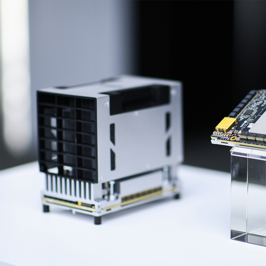 木馬協(xié)助上海本土芯片領(lǐng)先企業(yè)壁仞科技,打造壁礪系列計(jì)算模組。其中板卡采用了鋁合金外殼,從壁仞logo中提取大圓角元素作為品牌的超級(jí)符號(hào),貫穿系列產(chǎn)品。為了體現(xiàn)產(chǎn)品強(qiáng)大性能和精致感,采用了氧化和鏡面的表面處理對(duì)比。同時(shí)鋁合金有助于散熱,使產(chǎn)品兼顧性能和外觀品質(zhì)。