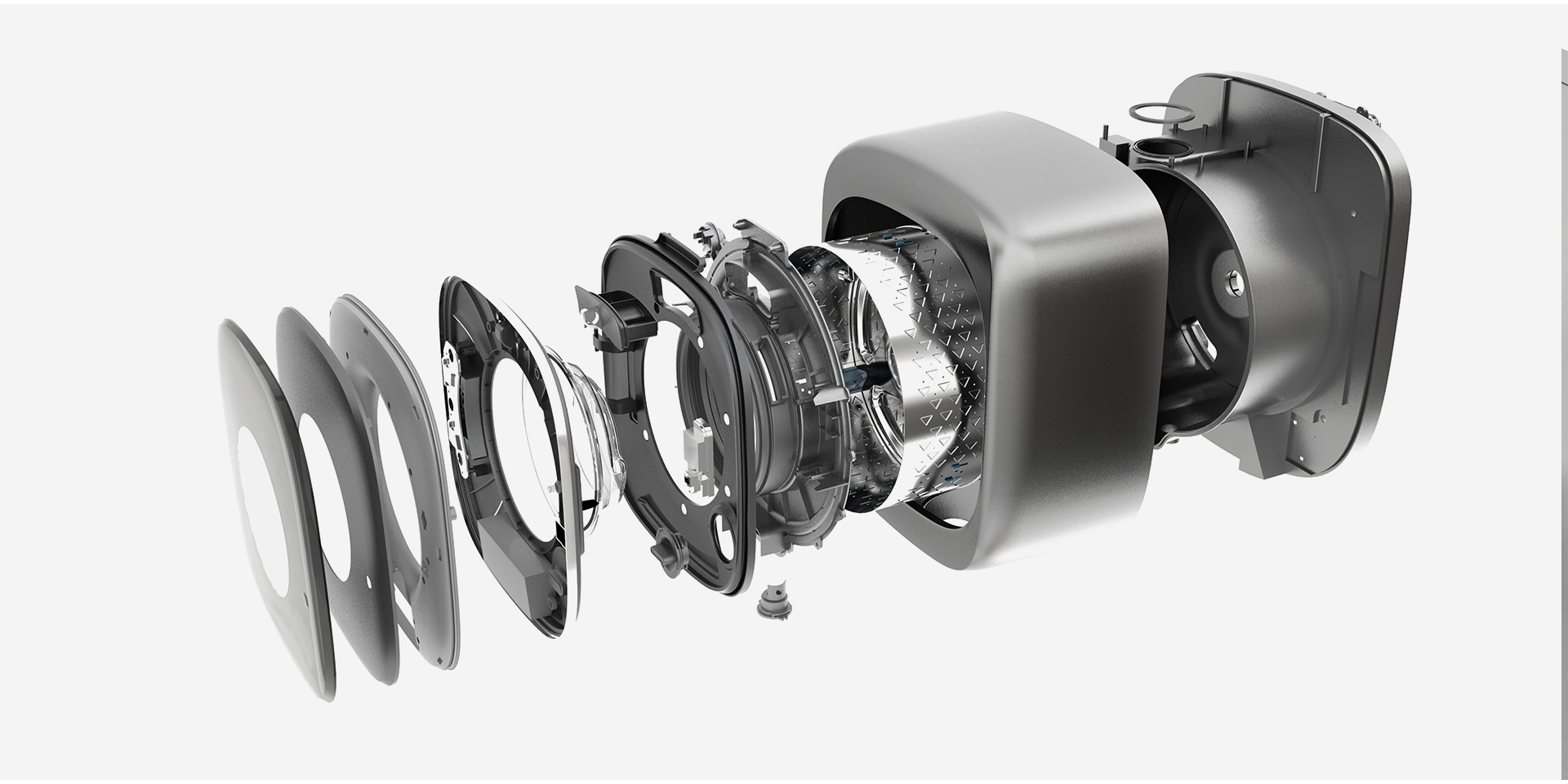 作為洗衣機(jī)領(lǐng)域的新生力量,“摩魚(yú)”壁掛式母嬰智能洗衣機(jī)打破常規(guī)的洗衣機(jī)形象,圓潤(rùn)、飽滿的外形又不失精致感。巧妙的機(jī)身設(shè)計(jì)與結(jié)構(gòu)排布,使得洗烘一體程序成為可能,極大地解決了寶寶衣服換洗頻率高的問(wèn)題。壁掛式洗衣機(jī)占地小,更適合常見(jiàn)的房屋格局,使用壁掛式洗衣機(jī)還可以避免細(xì)菌交叉感染,給健康生活帶來(lái)便利。其軟水處理功能,大大減少了洗衣液、柔順劑的使用,避免了化學(xué)物質(zhì)及殘留對(duì)衣物、水質(zhì)、環(huán)境可能造成的污染,對(duì)于人體皮膚、環(huán)境保護(hù)均有著直接的作用。