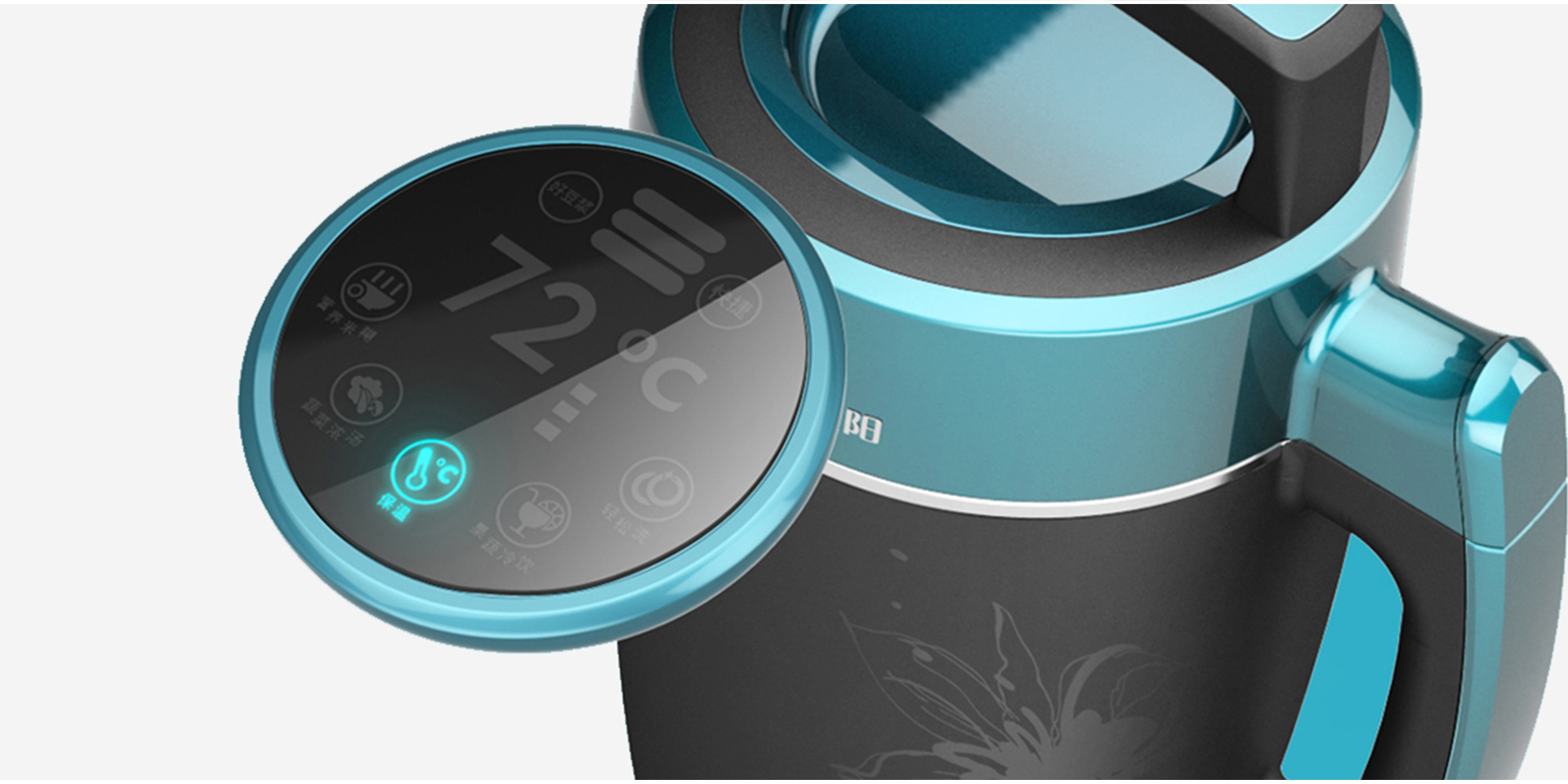 此產(chǎn)品為針對老年市場的豆?jié){機(jī),為其開闊了潛力巨大的市場,從老年人的生活習(xí)慣從發(fā),觀察老年人對豆?jié){機(jī)產(chǎn)品的使用特點(diǎn),挖掘出新的使用需求,作為我們的設(shè)計(jì)突破點(diǎn)。我們發(fā)現(xiàn)操作簡單,易于搬運(yùn),清洗方便等等方面是豆?jié){機(jī)需要改進(jìn)的地方,所以我們一方面在設(shè)計(jì)中將LED燈光提示、電子數(shù)字語音報(bào)讀、加大控制區(qū)域、多點(diǎn)放置方式、減輕產(chǎn)品重量等方式來改善其功能;除此之外,我們將傳統(tǒng)文化元素,例如青花瓷、竹韻、天壇等元素運(yùn)用到產(chǎn)品的形態(tài)設(shè)計(jì)中,以此增加產(chǎn)品的親切感,滿足老年人的情感需求。設(shè)計(jì)完成后,我們進(jìn)行了用戶測試,用于對產(chǎn)品設(shè)計(jì)和品牌信息的同步測試。這使得整個(gè)過程更具效率,而且保證了產(chǎn)品和品牌保持一致。