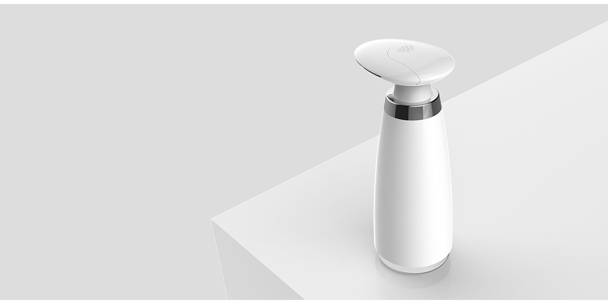 臺面感應(yīng)皂液器是為廣大消費(fèi)者設(shè)計(jì)的產(chǎn)品,采用仿生的設(shè)計(jì),將自然界的傘狀“蘑菇”形態(tài)運(yùn)用到產(chǎn)品造型中。隨著社會(huì)進(jìn)步,人們的個(gè)人健康衛(wèi)生意識逐步增強(qiáng),洗手液在酒店醫(yī)院商場的衛(wèi)生間已成為標(biāo)配。這款臺面感應(yīng)皂液器運(yùn)用了紅外感應(yīng)技術(shù),由電機(jī)驅(qū)動(dòng)噴頭,自動(dòng)噴出適量的洗手液到使用者的手心,既省去了使用者按壓出液的動(dòng)作,也避免多人碰觸按壓泵而帶來的二次污染。同時(shí)出液量可以調(diào)節(jié),有效的控制了用量,避免了浪費(fèi)。臺面感應(yīng)皂液器使用方便,無需安裝??梢苑胖迷诰频?、商場、醫(yī)院以及我們普通家庭的洗手臺上,只需將手放置在出液嘴下方,皂液將自動(dòng)噴出,簡單方便且實(shí)用。用戶可以自己調(diào)節(jié)出液量,以滿足不同環(huán)境。