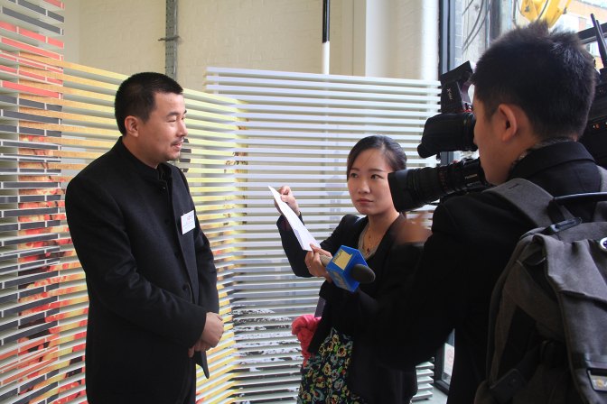 丁偉在場(chǎng)外接受記者的采訪