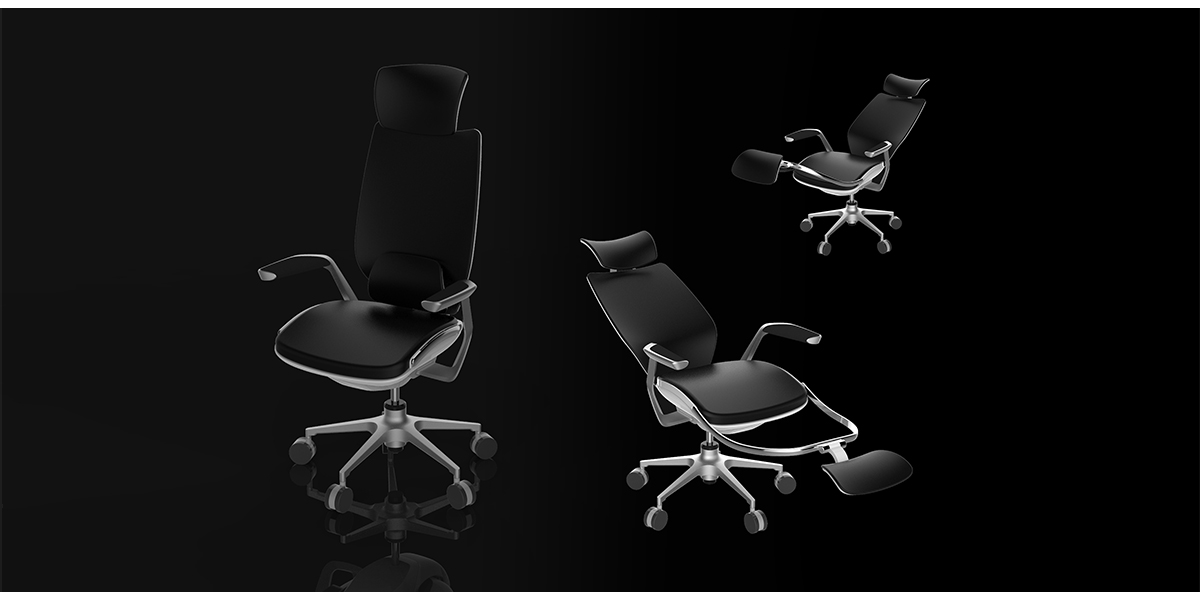 在生活節(jié)奏日益加快的今天,午休成了上班族們最頭疼的問題,常規(guī)午休方式為趴在桌子上或者斜靠在普通椅子上,醒來后身體會非常不舒服。為此,利豪公司與本公司合作,合力開發(fā)設(shè)計了這款可同時解決辦公和午休的椅子。本款辦公椅可以在20秒以內(nèi)快速展開成可供躺下休息的午休椅,同時又可以在20秒以內(nèi)折疊還原成一款精神十足的辦公椅。這款辦公椅提取了當(dāng)今流行的概念車中的造型語言,流暢婉轉(zhuǎn)的曲面過度中仍不失正氣和力量感。光亮的ABS與磨砂的鋁合金形成了鮮明的材質(zhì)對比,給人以活力十足之感。