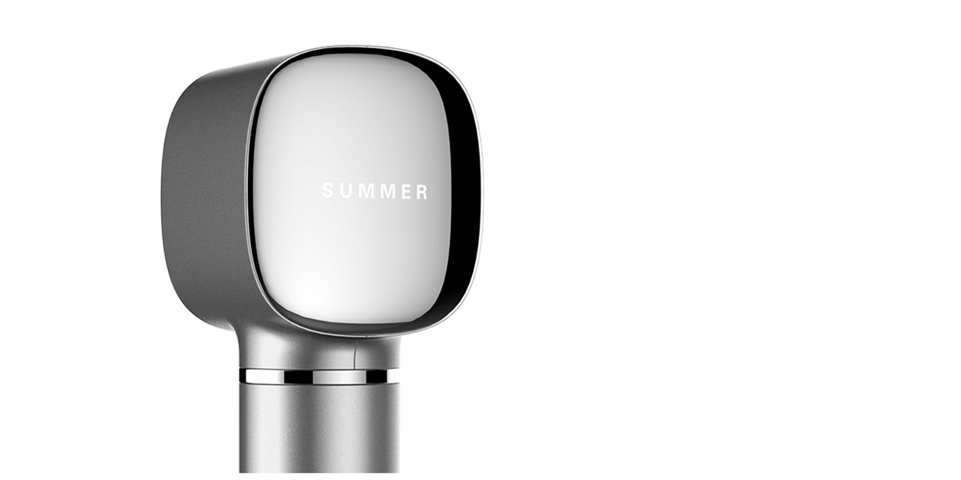 此款無葉風(fēng)扇為女性群體打造,將補(bǔ)光燈和鏡面相結(jié)合,便于女性在化妝時使用,無須再單獨(dú)使用補(bǔ)燈光,同時還可以享受涼爽的感覺。按鍵采用按壓一鍵式,短按風(fēng)量,長按補(bǔ)光,增加了光效功能。設(shè)計師將紋理與進(jìn)風(fēng)口相結(jié)合,隱藏式設(shè)計,減少進(jìn)風(fēng)口對整體造型的影響。
