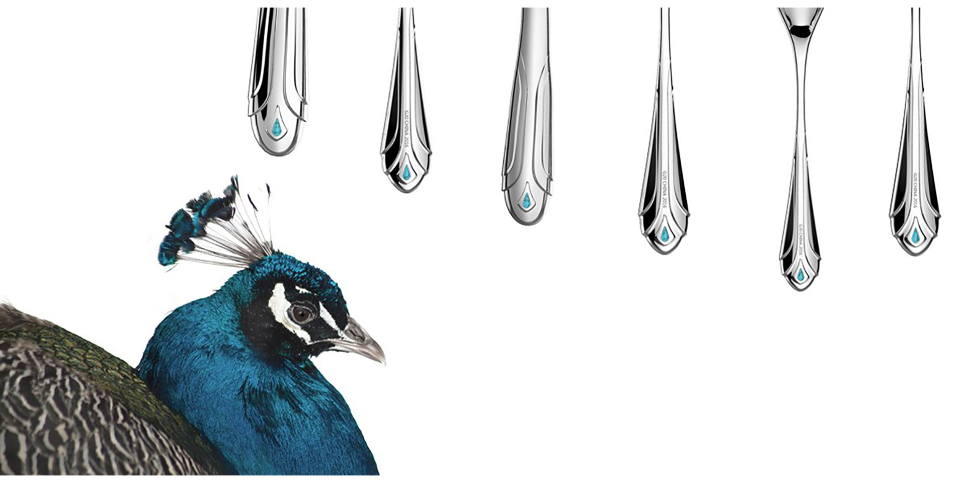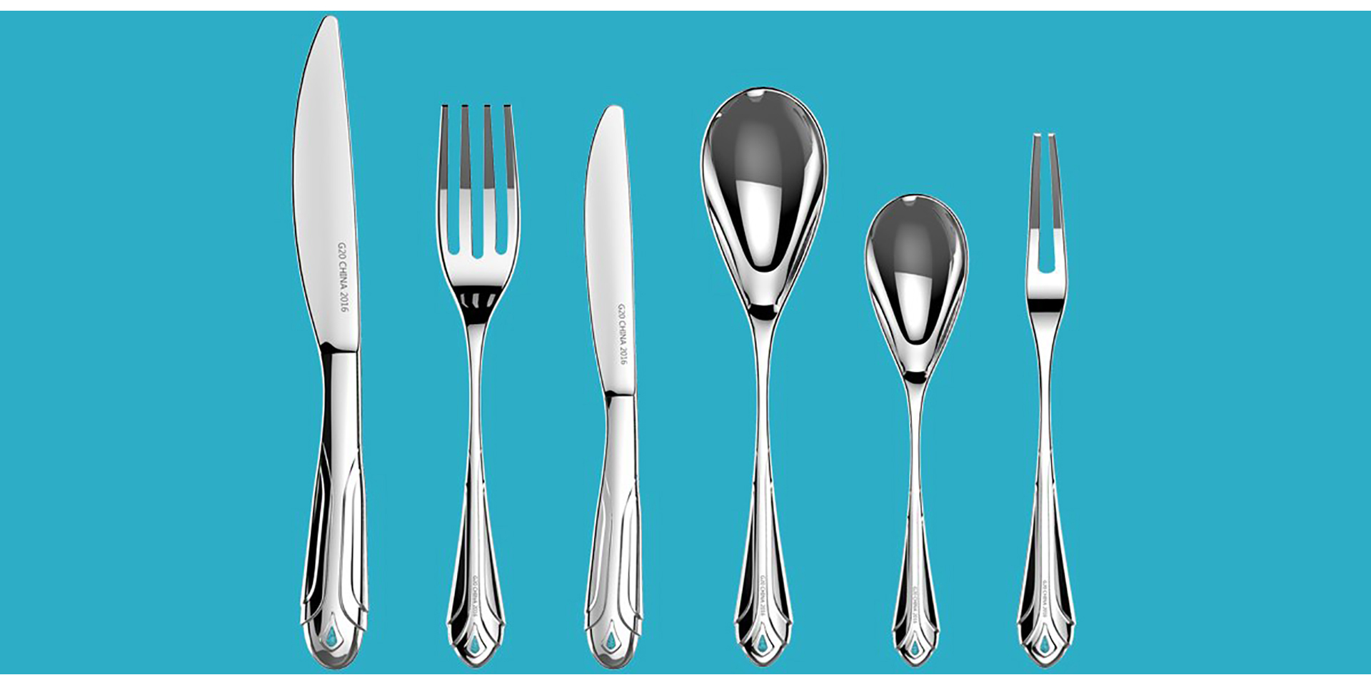 木馬為G20峰會(huì)國(guó)宴設(shè)計(jì)系列餐具,設(shè)計(jì)提煉了東方經(jīng)典元素,將古代傳統(tǒng)云紋、饕餮紋、鳥雀羽翼等納入設(shè)計(jì)中。從中華造物文化中考量形態(tài)與功能間的關(guān)系,洞察使用環(huán)境與使用者的,從關(guān)注系統(tǒng)到關(guān)注人的這一設(shè)計(jì)的角度去指導(dǎo)設(shè)計(jì),明確設(shè)計(jì)目標(biāo)。最終,通過討論分析,選擇了孔雀羽翼形態(tài)的元素作為設(shè)計(jì)的象征元素?!叭浮保庵给P凰,是百鳥之王,寓意著智慧、自由、和平。雀羽作為國(guó)宴餐具的象形特征,其涵義具有強(qiáng)有力的文化傳播性。雀羽在充分展現(xiàn)出餐具的玲瓏形態(tài)的同時(shí),幽影隱的滲透出東方造物的精致與細(xì)膩,流線造型機(jī)械質(zhì)感絲毫不得見,宛若天成。在餐桌文化中向世界充分的展現(xiàn)出國(guó)家的文化軟實(shí)力。符合G20多元文化結(jié)合的主題。