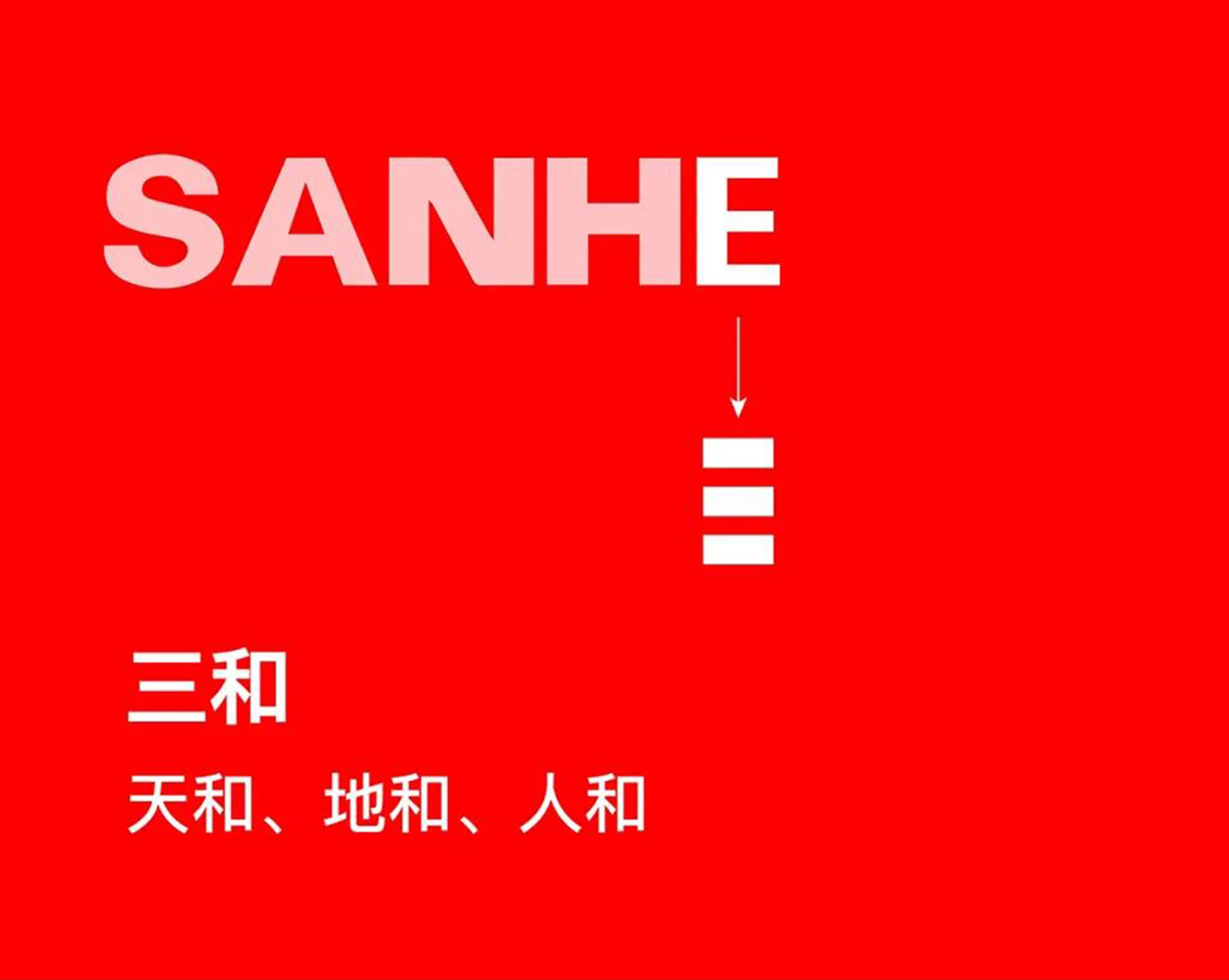 自1985年創(chuàng)立至今, 經(jīng)歷了30多年磨煉的浙江三和控股集團(tuán)有限公司, 已發(fā)展成為一家跨領(lǐng)域、跨地域的多元化企業(yè)集團(tuán)。 木馬設(shè)計有幸成為了三和集團(tuán)的品牌視覺系統(tǒng)設(shè)計方, 攜手將三和集團(tuán)打造成一家值得信賴的品牌。 作為一家中國的本土企業(yè)集團(tuán), 三和的名字蘊(yùn)含了濃厚的中華文化“三和”代表了天和地和、人和。 天和日月明,地和萬物生,人和福壽增,由此方可家和萬事興。 首先提取“SANHE“與“三”最為相近的字母E,作為點(diǎn)睛之筆,簡化為“三”的樣式。 三代表一生二,二生三,三生無窮。同時形狀又似八卦中的乾卦通過簡單的形變準(zhǔn)確表現(xiàn)出了集團(tuán)的文化底蘊(yùn)。