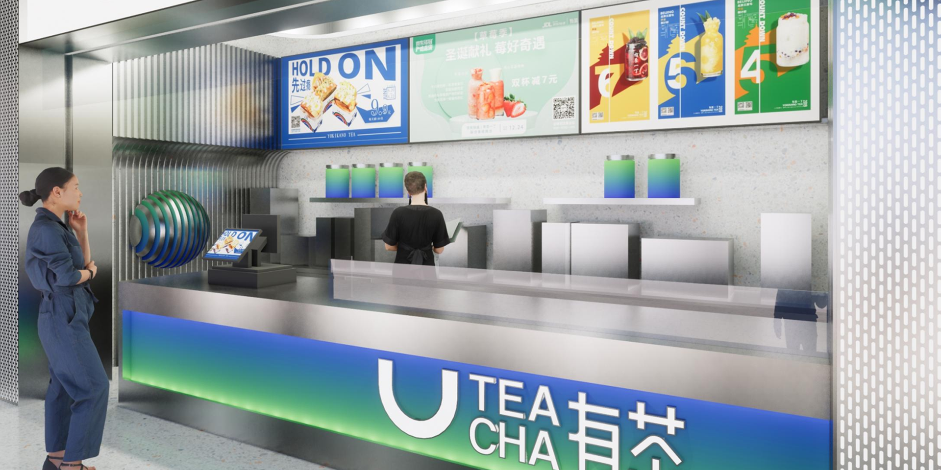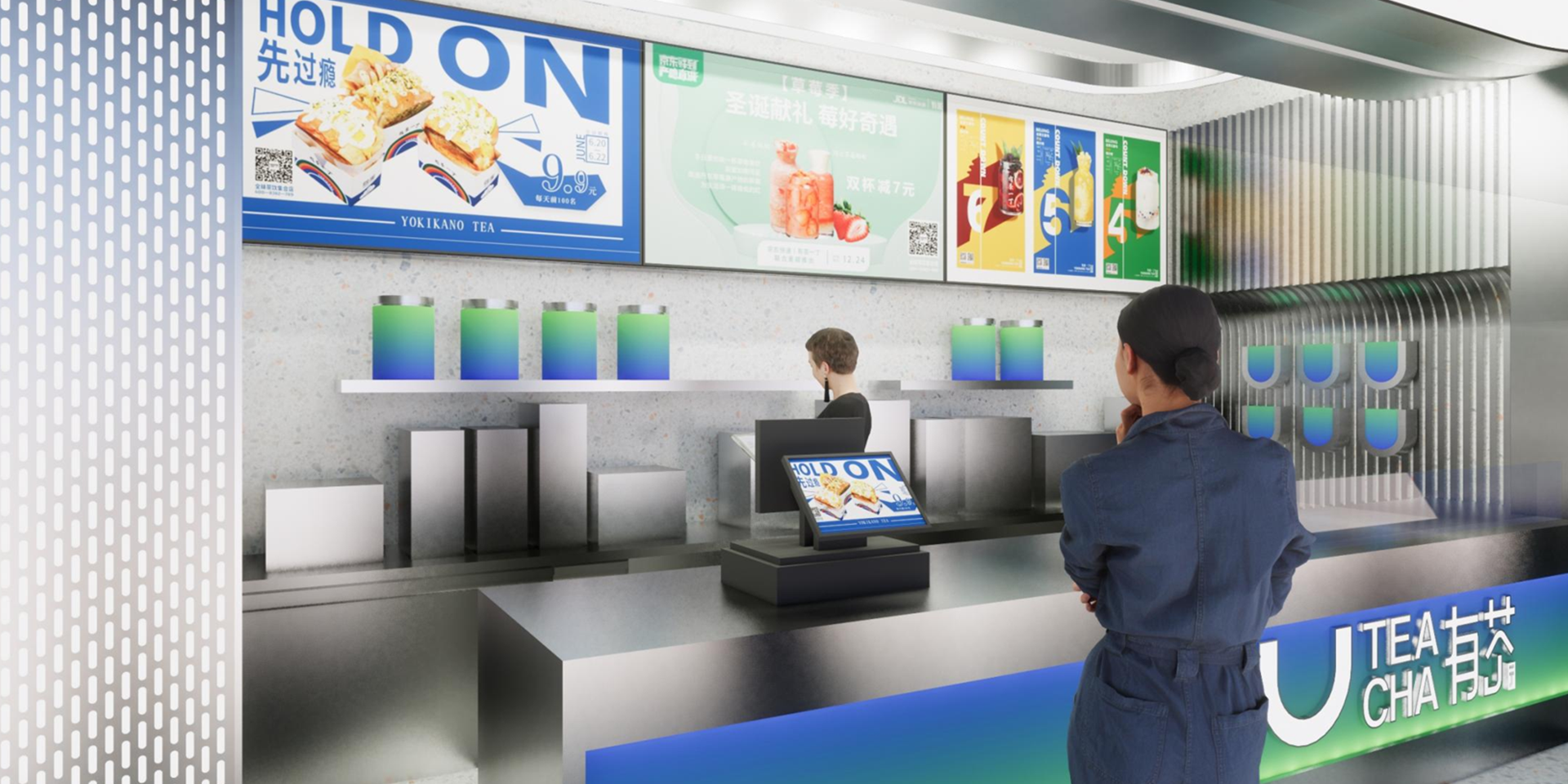 此項(xiàng)目為SI終端設(shè)計(jì)項(xiàng)目,從品牌VI基礎(chǔ)規(guī)范、應(yīng)用至空間設(shè)計(jì)委托木馬進(jìn)行全案設(shè)計(jì),空間整個門店的材質(zhì)以不銹鋼與水磨石為基底,年輕時尚,借鑒一些機(jī)場或高鐵站的設(shè)計(jì)突出旅行氛圍。以U為衍生品牌視覺錘增添細(xì)節(jié),U的形式語言:店內(nèi)兩側(cè)墻面做了局部弧線,強(qiáng)化品牌“U”的視覺,強(qiáng)化旅行主題,飛行起飛的弧線。