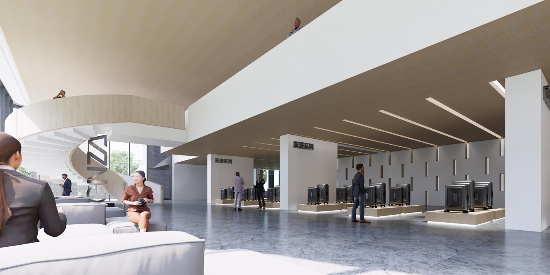 通過對銀座箱包企業(yè)文化、公司發(fā)展演變、生產工藝流程需求及新園區(qū)場地規(guī)劃現狀等信息的梳理,提出五大建設目標:生態(tài)集約的人本園區(qū)、展示企業(yè)的品牌形象、視覺系統(tǒng)整體性提升、數字智造的傳播體驗、高效自動化管理秩序。