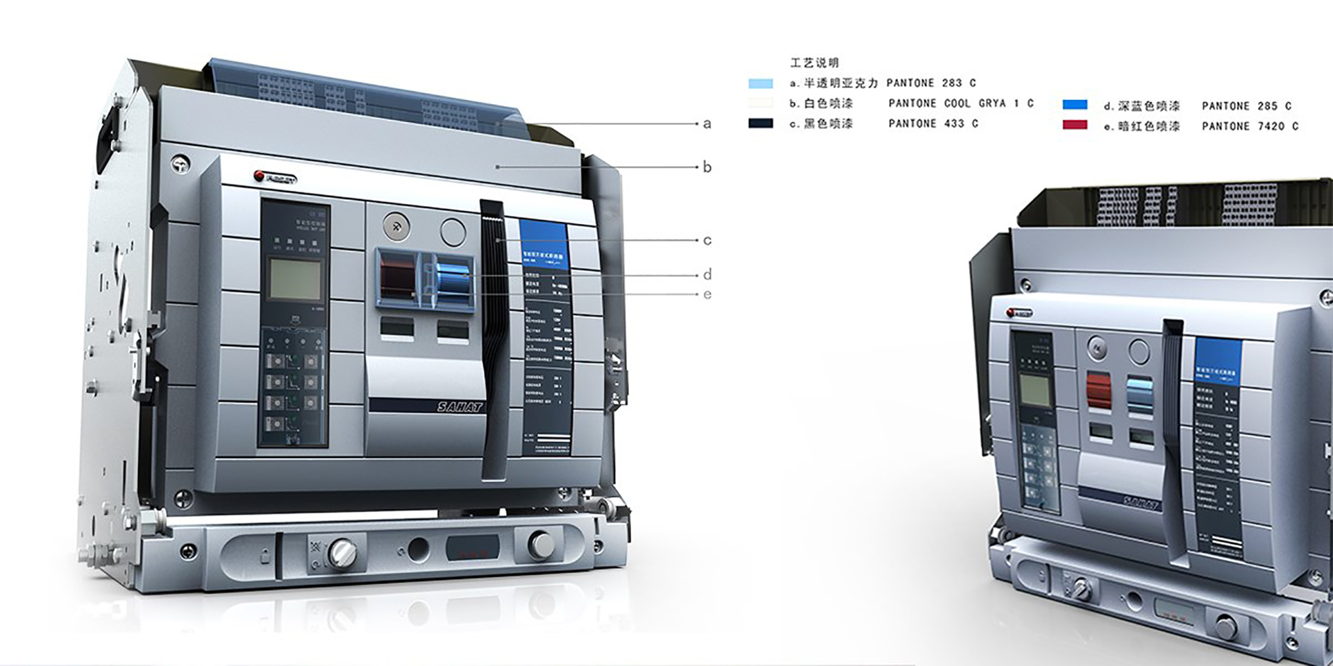 本款設(shè)計采用了大弧面的設(shè)計風格,橫向的工藝線條劃分出功能區(qū)域,為了尋求產(chǎn)品本身獨有的特色,我們細致到每一個細節(jié),充分把握產(chǎn)品的特征。傳統(tǒng)的電氣行業(yè)中更注重功能,我們介入設(shè)計一改以往電氣設(shè)備厚重呆板的視覺感受,其創(chuàng)新面不再是單一的外形,通過平面立體化和線條分割把產(chǎn)品的各個使用功能區(qū)域劃分而且還各個部位的使用功能區(qū)域劃分,通過了解工人的使用習慣我們還制訂了各個部位的相對位置讓錯作人員不會產(chǎn)生誤操作。人性化的把手設(shè)計在保留使用功能的同時加入了產(chǎn)品語言,使其統(tǒng)一協(xié)調(diào)。力求用最純粹的語言完美打造電氣行業(yè)的龍頭產(chǎn)品。