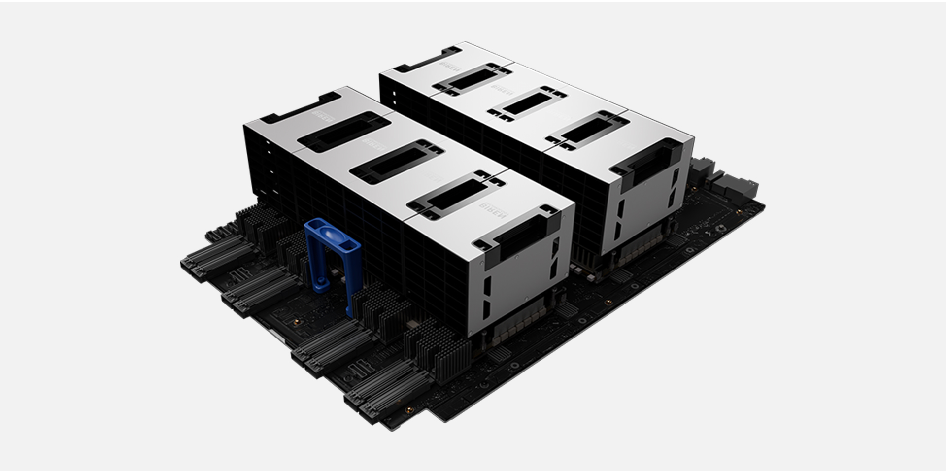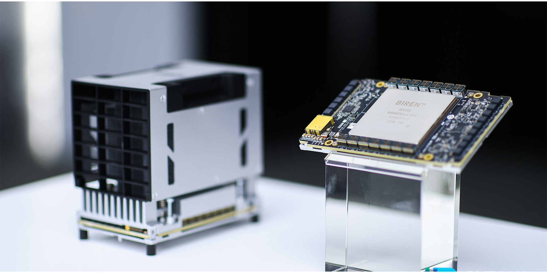 本次協(xié)助壁仞科技,打造壁礪系列計(jì)算模組。包含壁礪?106B、106C的PCIe板卡和106M的OAM模組。其中板卡采用了鋁合金外殼,從壁仞logo中提取大圓角元素作為品牌的超級(jí)符號(hào),貫穿系列產(chǎn)品。為了體現(xiàn)產(chǎn)品強(qiáng)大性能和精致感,采用了氧化和鏡面的表面處理對(duì)比。同時(shí)鋁合金有助于散熱,使產(chǎn)品兼顧性能和外觀品質(zhì)。OAM模組上, 把圓角矩形符號(hào)作為左右連接的元素,展現(xiàn)聯(lián)合矩陣的強(qiáng)大。同時(shí)也作為安裝替換的把手區(qū)域來(lái)使用。整個(gè)系列產(chǎn)品,從內(nèi)到外始終體現(xiàn)簡(jiǎn)潔高效,為我國(guó)芯片產(chǎn)品開(kāi)拓市場(chǎng)打下了扎實(shí)的基礎(chǔ)。通過(guò)創(chuàng)新性使用chiplet技術(shù),壁仞科技在實(shí)現(xiàn)大芯片高良率與高性能兼顧的同時(shí),還通過(guò)一次流片,得到兩種芯片?雙die產(chǎn)品BR100和單die產(chǎn)品BR104,覆蓋不同層級(jí)市場(chǎng)。