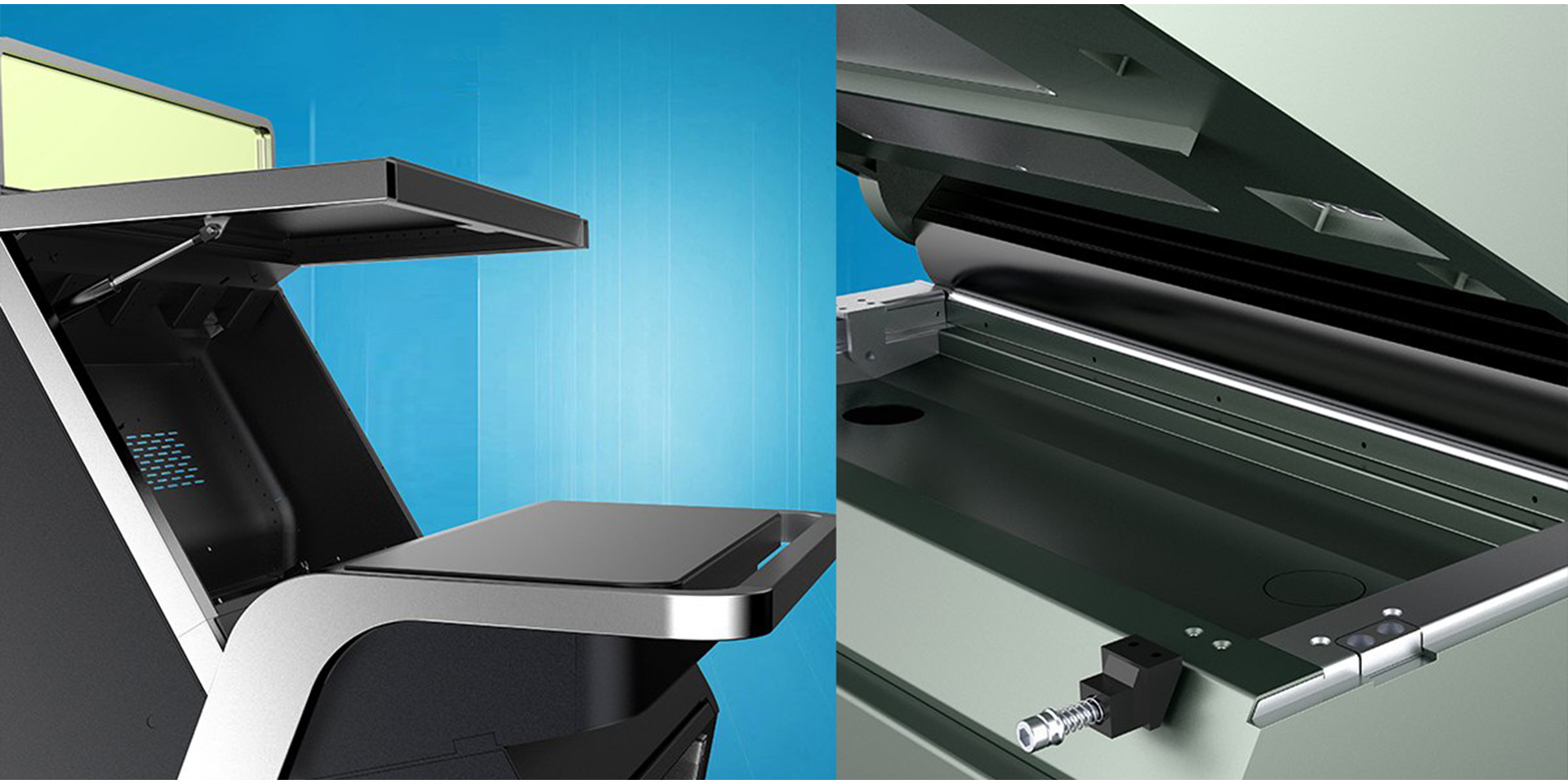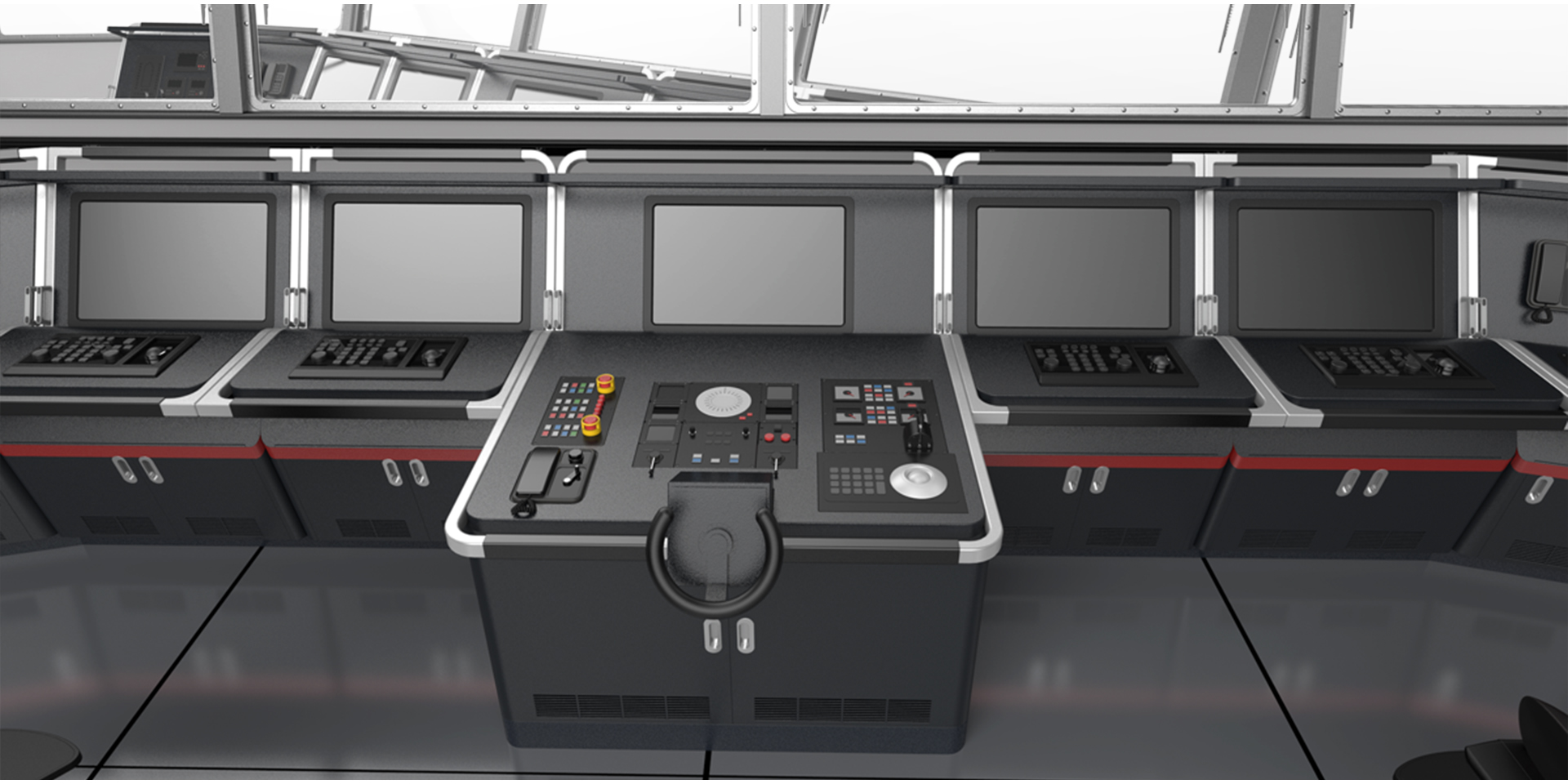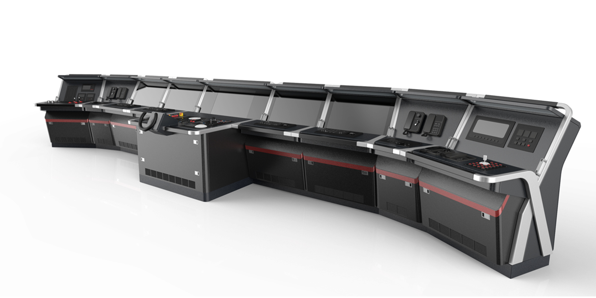 此款控制臺(tái)以人機(jī)工程學(xué)作為設(shè)計(jì)的切入點(diǎn),經(jīng)過(guò)計(jì)算、推敲、模擬確定控制臺(tái)的操作尺寸和按鍵排布。產(chǎn)品顏色采用深色系,符合其使用環(huán)境。造型上突破常規(guī)風(fēng)格,拉伸體作為產(chǎn)品的基礎(chǔ)形態(tài),表達(dá)沉穩(wěn)可靠的設(shè)計(jì)感。產(chǎn)品的特色是充分考慮到操控功能分區(qū),在保證操作實(shí)用性的同時(shí),加入獨(dú)特的X造型設(shè)計(jì)語(yǔ)言在硬朗的線條中增添了一份靈性。前后扶手與控制臺(tái)連接處采用插接結(jié)構(gòu),給產(chǎn)品整體增加亮點(diǎn),同時(shí)減少設(shè)備的冰冷帶給人的距離感,人機(jī)交互體驗(yàn)良好。為了避免顯示臺(tái)面、操作臺(tái)面積水,本設(shè)備采用了隱藏式導(dǎo)水結(jié)構(gòu),據(jù)美觀有實(shí)用。使用模塊化組件,減少施工安裝周期降資節(jié)本;控制臺(tái)兼容各類型船舶駕駛系統(tǒng),集中功能于一身,節(jié)省了諸多能源。