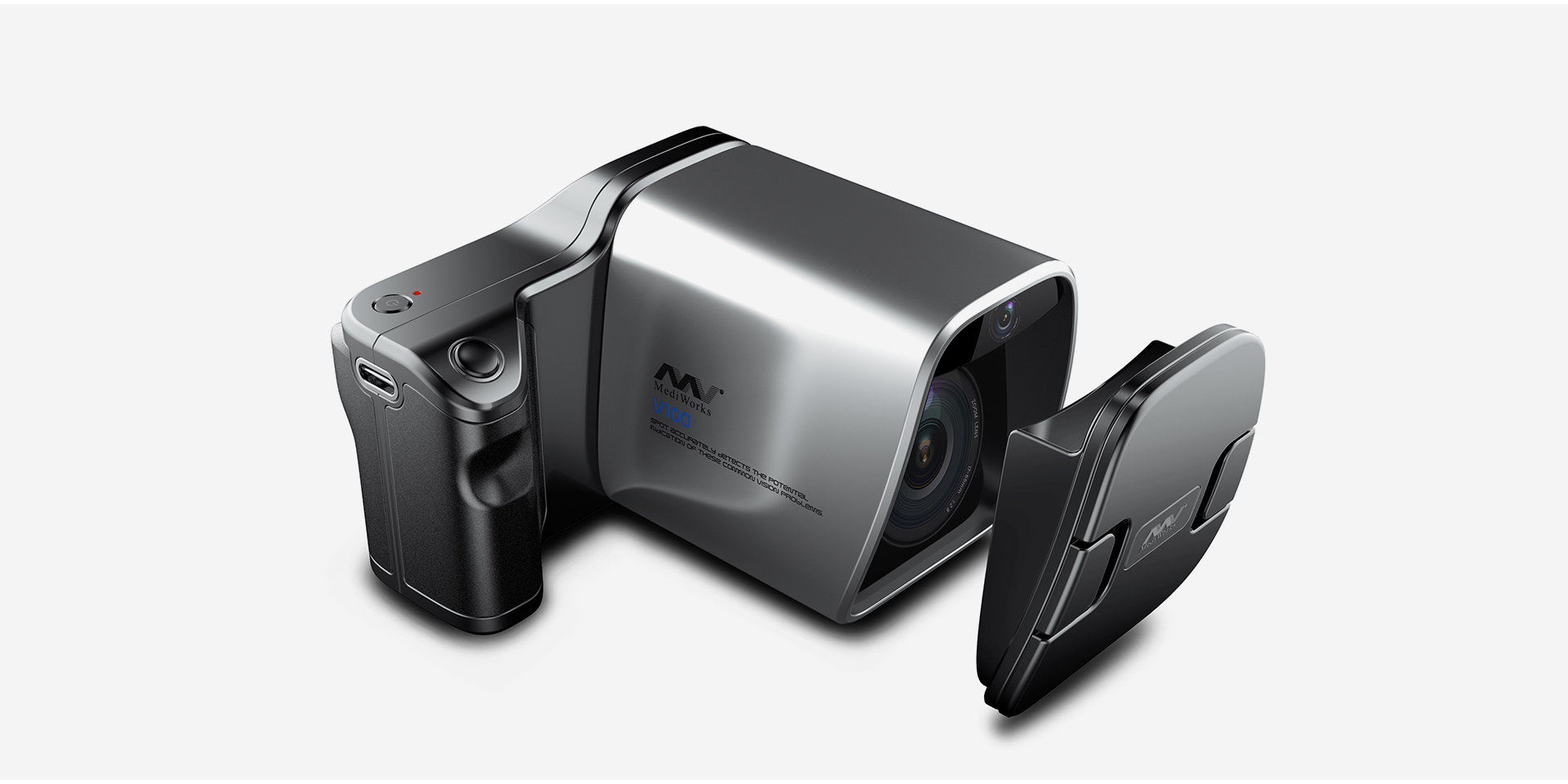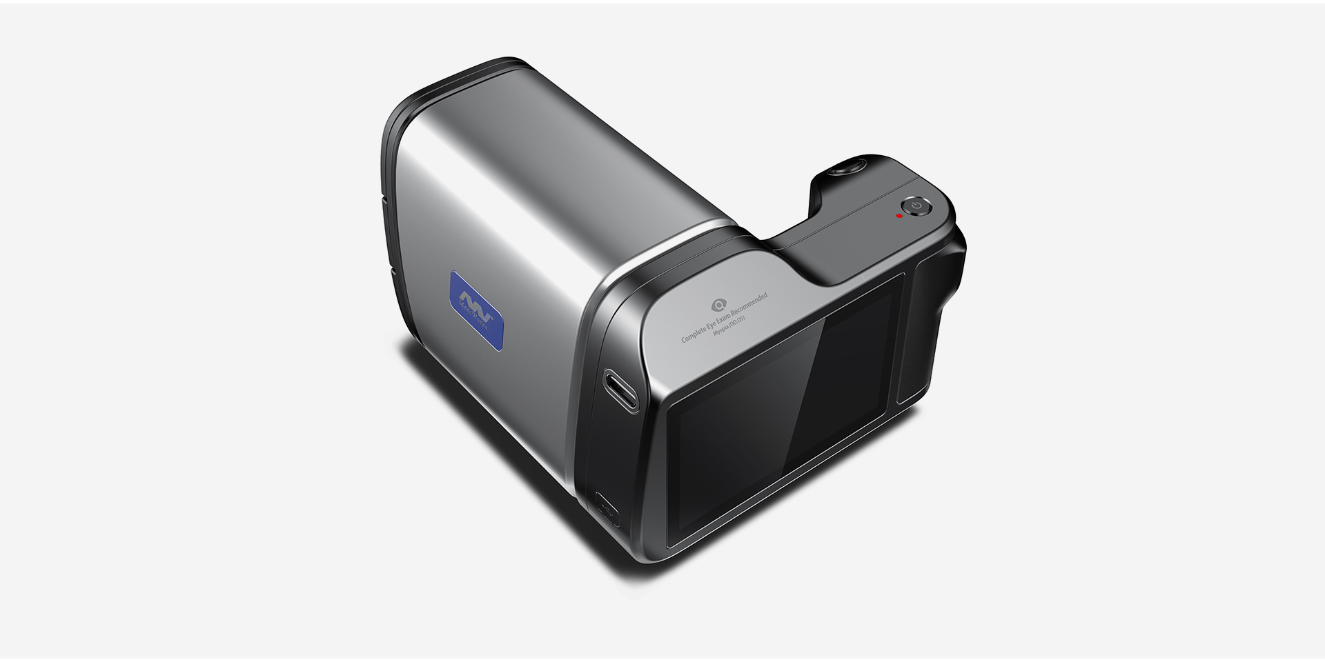 該產(chǎn)品的外觀采用極簡設(shè)計,形似單反相機,邊角略圓潤,產(chǎn)品以深灰色配色,整體外觀時尚大氣、別具一格,區(qū)別于傳統(tǒng)醫(yī)療設(shè)備。結(jié)合產(chǎn)品材料質(zhì)感,凸顯專業(yè)價值。機身使用了ABS塑料,在外表上采用了細沙金屬噴漆的工藝,在人手關(guān)鍵握持部位采用了柔觸感噴漆/透氣皮革,增強摩擦力且長期持握不滑手。