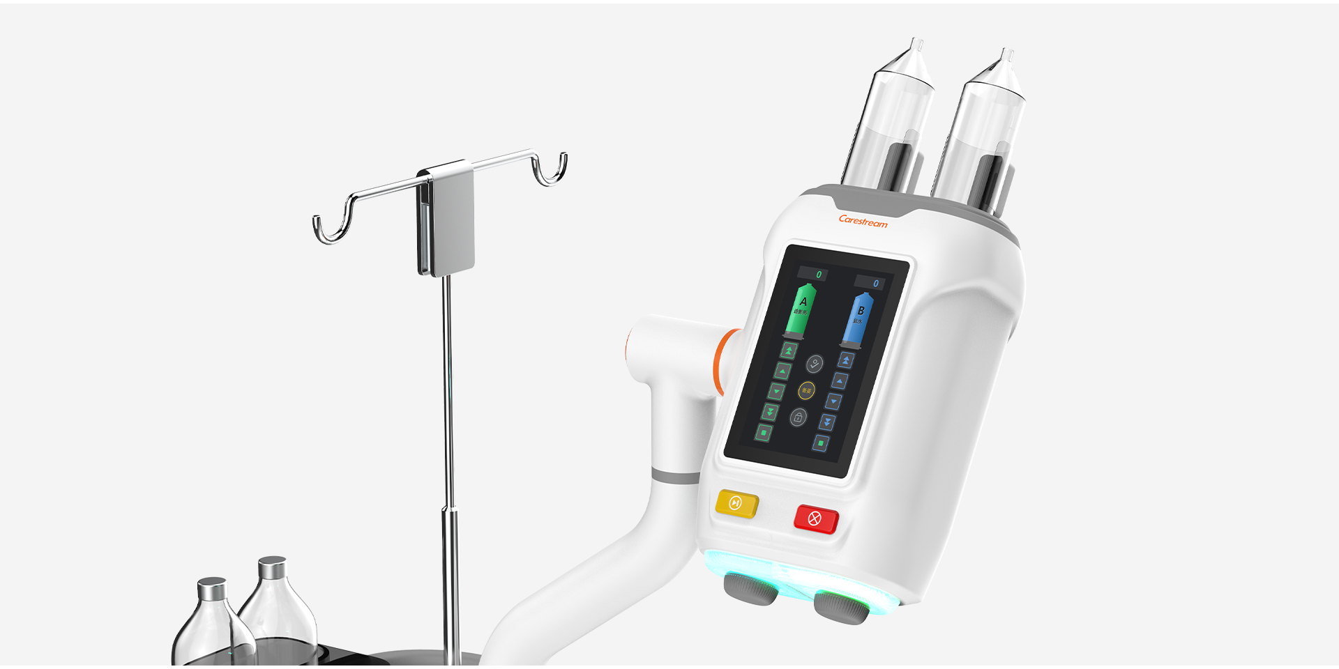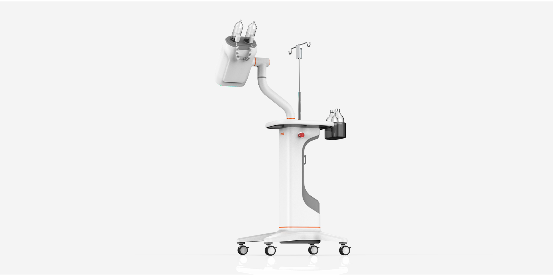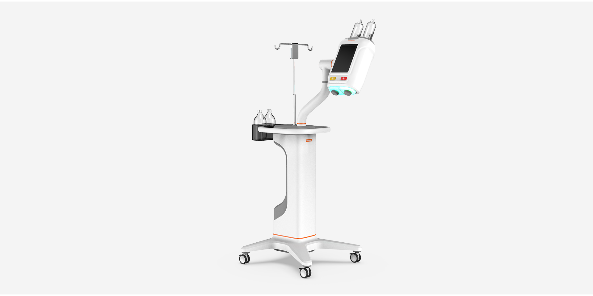 該高壓注射器整體造型采用簡約幾何,符合當(dāng)下醫(yī)療造型趨勢。高壓注射器適用于CT室內(nèi)各種增強造影,其采用雙筒設(shè)計,可同時注射對比劑與生理鹽水,相比傳統(tǒng)單筒高壓注射器,可以更有效節(jié)約對比劑,減輕患者體內(nèi)代謝負(fù)荷;自動吸藥,降低操作難度,節(jié)約準(zhǔn)備時間,大大提高技師及護士的工作效率。Wave高壓注射器的雙流注射功能可以提供差異化顯影、減少對比劑偽影,便于醫(yī)生精準(zhǔn)診斷。在安全性上,Wave高壓注射器提供實時壓力曲線,監(jiān)測壓力變化,減少滲漏、降低患者風(fēng)險;并有兩級超壓報警,當(dāng)接近設(shè)定的壓力閾值時,會進行預(yù)警,超過壓力限制會有聲光報警并停止注射程序,保證患者注射安全。