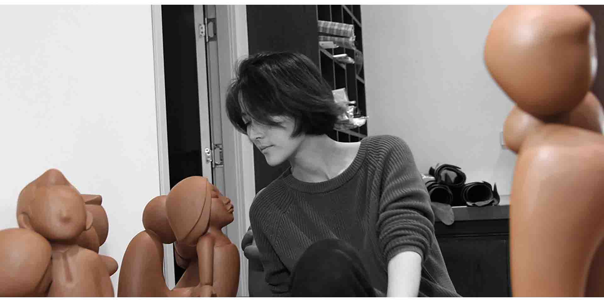 說就是半路出家,完全自學(xué)!早年畢業(yè)于清華大學(xué)美術(shù)學(xué)院服裝設(shè)計專業(yè),后在通訊公司從事UI交互設(shè)計工作。一次偶然的機(jī)會,董濤接觸到了陶瓷,一見鐘情,便愛上了陶瓷和雕塑。就是這樣一位看似“普通”的女子,不僅在藝術(shù)創(chuàng)作的道路上一步步走向了成功,并且在2010年就創(chuàng)辦了“漫生快活”這個家喻戶曉的品牌。我們都是內(nèi)斂而羞澀的人,濃烈的感情也只是默默地安放在內(nèi)心的某一處,西方奔放的情感表露常常被歆羨,卻是可望而不可即。而董濤卻將這種我們所向往的情感以雕塑的形式外化,讓人們感受到濃郁而恬靜的情緒張力?!袄p綿系列”的誕生,讓我們看到了不一樣的情感流露:董姐將自己對于雕塑的熱愛傾注于那一個個交纏的小人,而小人所交匯的感情向我們傳遞著一種“要敢于說出愛”的積極向上的態(tài)度。