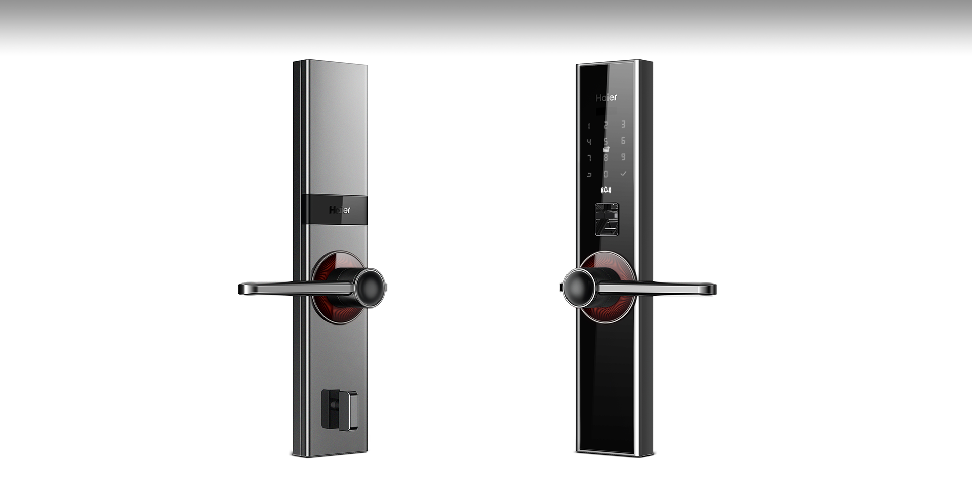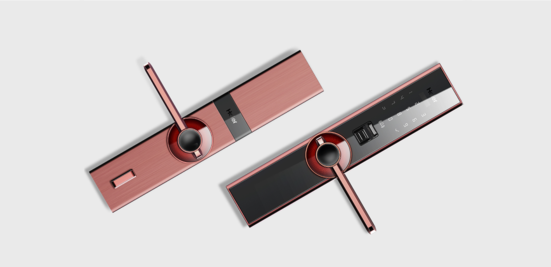 云盾系列智能門鎖從旋轉(zhuǎn)把手這一關(guān)鍵動(dòng)作入手,將其作為視覺、使 用與交互的核心并將之放大,同時(shí)與其“智慧之眼”的名字相呼應(yīng)。 智慧之眼智能門鎖通過數(shù)字密碼、門卡以及指紋進(jìn)行來訪者的身份識(shí) 別,使得未經(jīng)授權(quán)的人員無法進(jìn)入家中或者辦公區(qū)域。門鎖的四周均 采用金屬材質(zhì),對(duì)中部玻璃面板也采取了包嵌的方式,使其無法被惡意人員使用暴力破壞,極大地增強(qiáng)了安全性。門鎖的把手摒棄了傳統(tǒng) 手柄正面很粗糙的外觀造型,將其調(diào)轉(zhuǎn)方向,既保證了正面觀看的纖 細(xì)美觀性,同時(shí)也大大增加了把手與人手接觸的面積。“智慧之眼” 獨(dú)特的屏顯方式與呼吸燈的交互方式,也使反饋更加親密,科技感和 品質(zhì)感一覽無余。